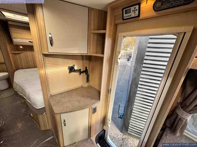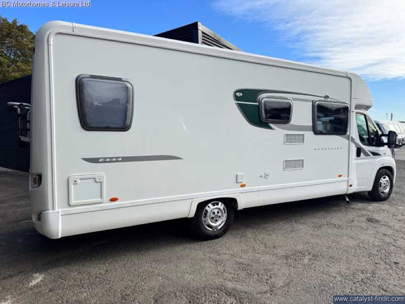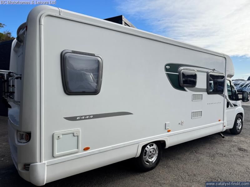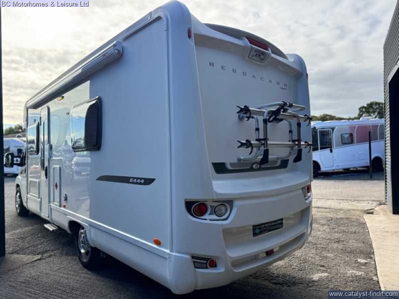 - 2014 bessacarr E444. 22974 miles 4 berth 4 belts French Bed Rear Washroom Bike Rack Awning Dual Reversing Camera Microwave Truma gas and electric heating External Water pump