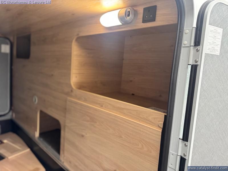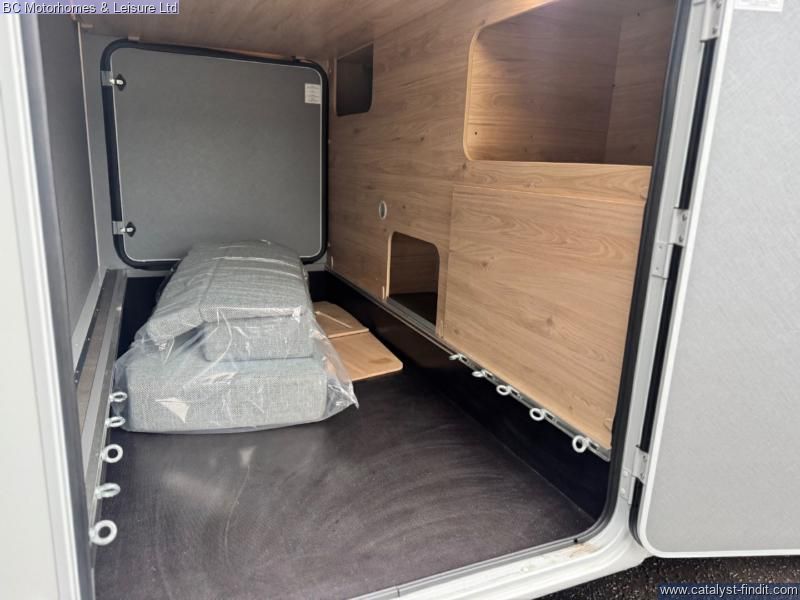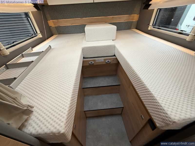 - Fixed rear beds over a large garage