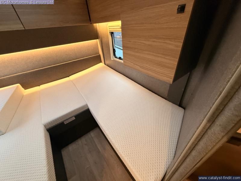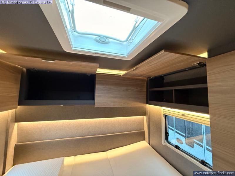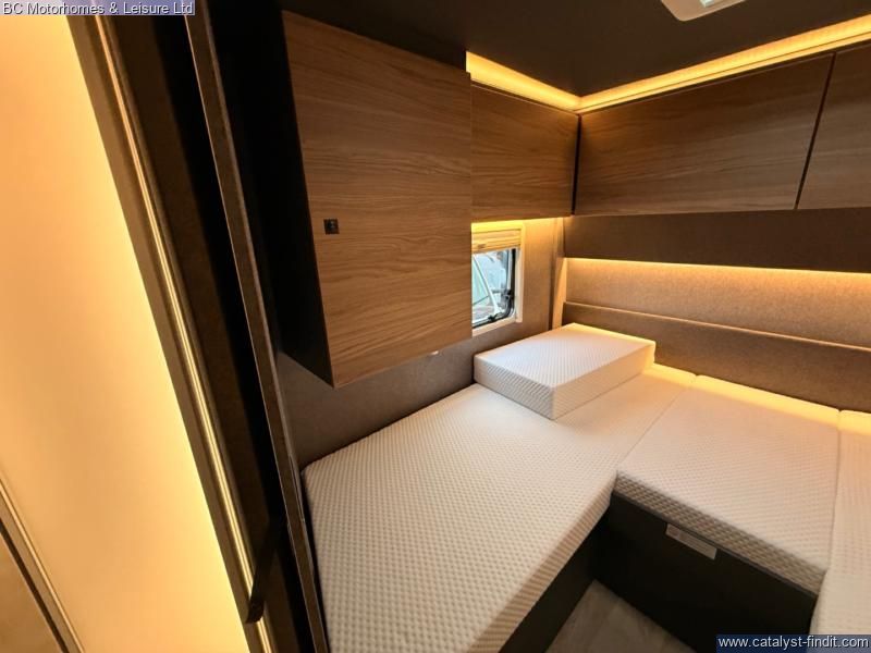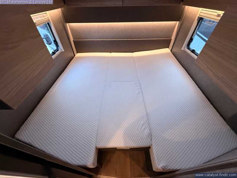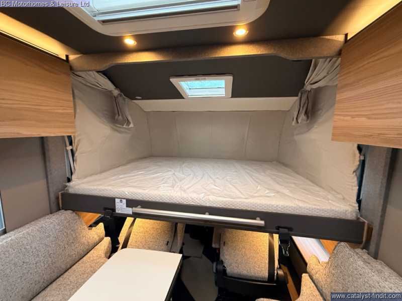 - The I 7057 EBL floorplan includes rear single beds and drop down bed in the cab area, making this model perfect for 4. Extra features include a whole host of ambient lighting, Dethleffs design pack and gas oven.