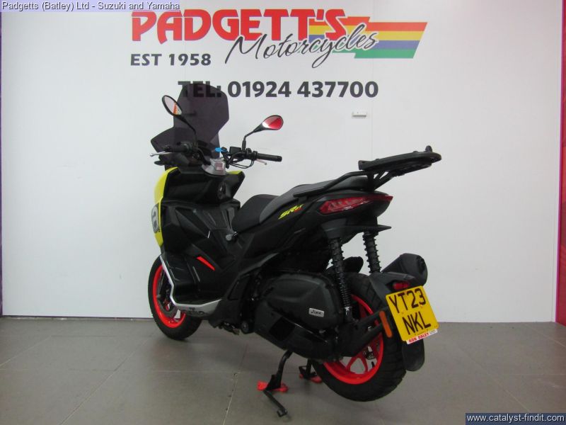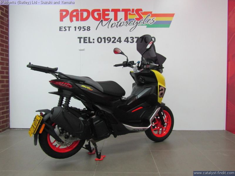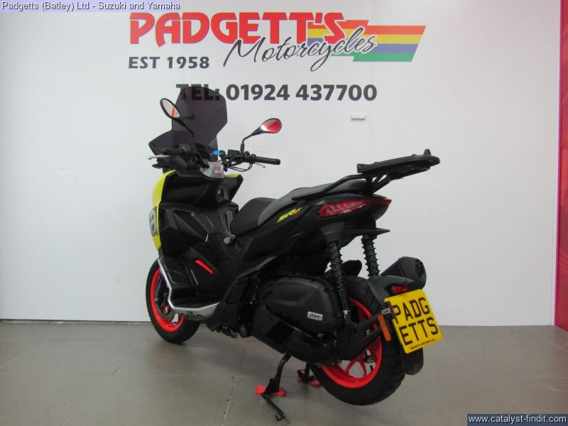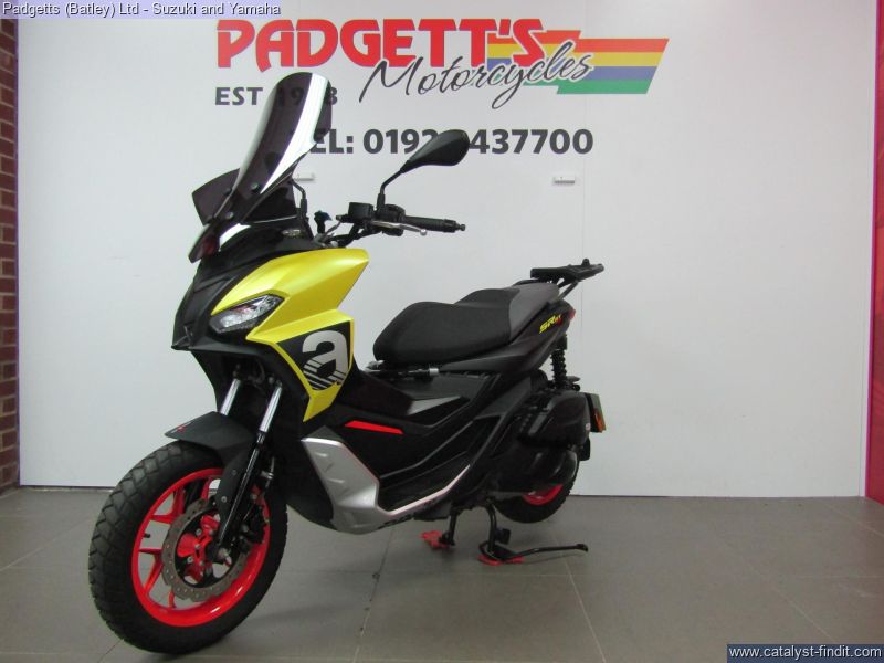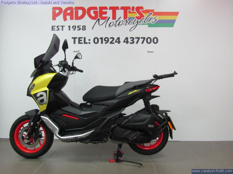 - We present here for sale this Aprilia SR125 GT Sport in Yellow. The bike has only covered 2,080 miles and is in great condition. The bike has been fitted with some superb extras including: - Puig Tall Dark, Shad Scooter Lock System, Givi Rear Rack and Quadlock Phone Mount also has Original Screen and Grab Rail. The bike comes complete with Original Owner’s Manual, 2 Keys, Service Book Showing Part Service History (1st Service in January 2024 @ 709 miles) and Log book. The bike is available for viewing and is well worth a look. Finance is available and is subject to status. Part Exchanges welcome. Nationwide delivery can be arranged from as little as £75. Usual Dealer Facilities including a Large range of clothing, helmets & accessories. Call Padgett's Motorcycles today to ensure that you don't miss out; Suzuki Sales Centre 01924 609808, Honda Sales Centre 01924 437700 and Yamaha Sales Centre 01924 478491.