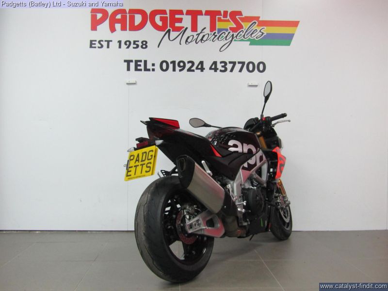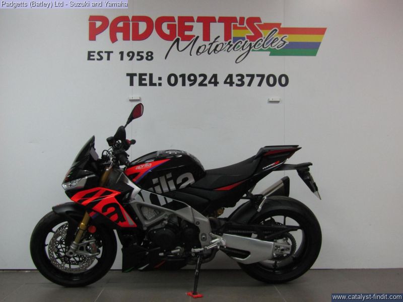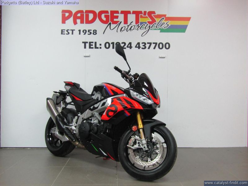 - We present here for sale this Aprilia Tuono V4 1100 Factory in Black. The bike has only covered 5,104 miles and is in great condition. The bike has been fitted with some superb extras including: - Radiator Guard, Engine Covers, Seat Cowl and Pillion Seat, Stand Bobbins and Tank Protector. The bike comes complete with Original Owner’s Manual, 2 Keys, Service Book Showing Full Service History (01/11/2024 @ 604 miles) and Log book. The bike is available for viewing and is well worth a look. Finance is available and is subject to status. Part Exchanges welcome. Nationwide delivery can be arranged from as little as £75. Usual Dealer Facilities including a Large range of clothing, helmets & accessories. Call Padgett's Motorcycles today to ensure that you don't miss out; Suzuki Sales Centre 01924 609808, Honda Sales Centre 01924 437700 and Yamaha Sales Centre 01924 478491.