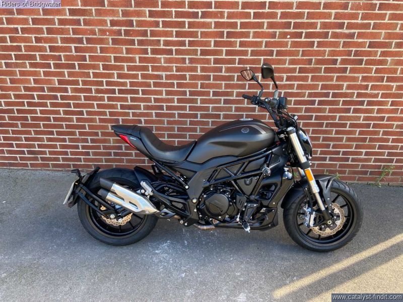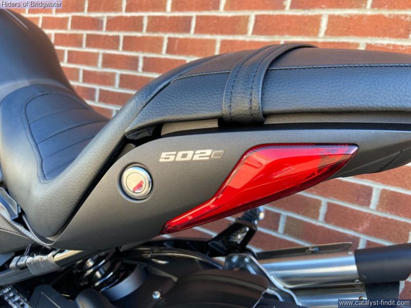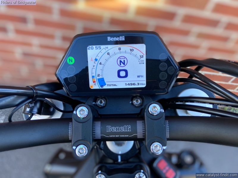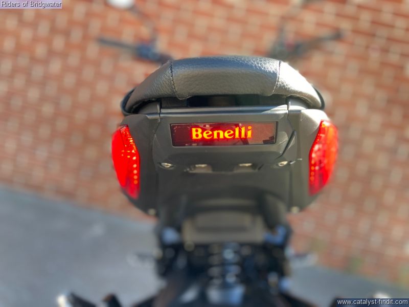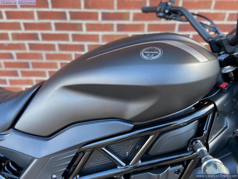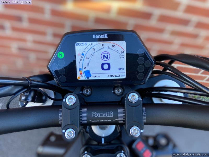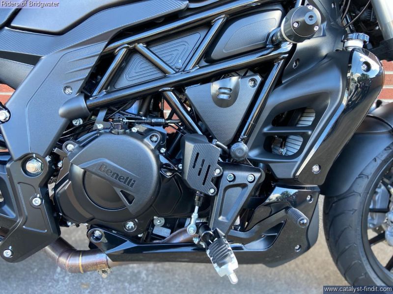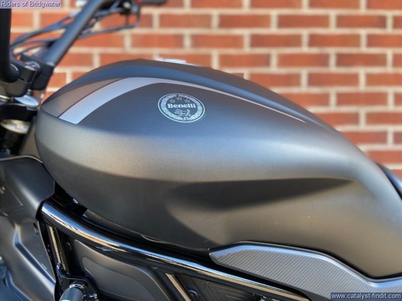 - Great example of the Benelli 502 Custom model in black. This bike boasts performance cruiser styling and riding position, ABS brakes with radial calipers, forward foot-controls, crash bungs, digital dash with front & rear cameras! Open pipe for a fruity soundtrack.