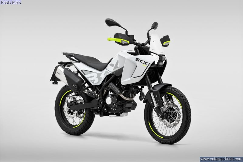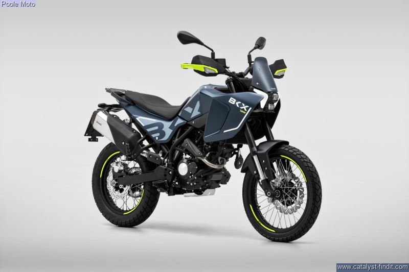 - The BKX 125 features a steel tubular trellis frame and a 41 mm front fork that is fully adjustable for preload, compression, and rebound damping. This is a premium feature in a very accessible segment, allowing even the youngest riders and beginners to experiment with chassis setup and discover the infinite set-up combinations. The monoshock, adjustable for preload and rebound damping, is connected to the swingarm via a linkage. To tackle any terrain, the BKX 125 features 180 mm of suspension travel and a 19”/17” spoked wheel combination, just like modern adventure bikes (90/90-19” at the front and 120/90-17” at the rear).