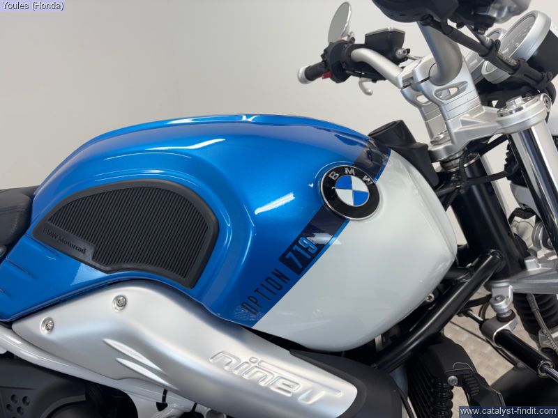 - This stunning 22 plate BMW R nineT Option 719 Edition is a true premium modern classic, finished in the unmistakable and highly desirable Option 719 Blue & Pearl White colour scheme. Beautifully engineered, incredibly characterful, and fitted with a huge range of high-end accessories, this is a bike for riders who appreciate craftsmanship, style, and performance. With the exclusive Option 719 upgrades, this R nineT stands out from the crowd thanks to a host of factory and aftermarket enhancements that elevate both its aesthetics and riding experience. ________________________________________ Key Features & Accessories This bike comes loaded with premium Option 719 accessories, including: • Option 719 billet aluminium cam covers – precision- machined for a stunning custom look • Option 719 bar-end mirrors – stylish and functional • Gilles levers and rearsets – adjustable, top-quality components offering enhanced control • Full titanium Akrapovic exhaust system – lightweight, premium, and sounds absolutely incredible A beautifully put-together machine with superb attention to detail throughout. ________________________________________ Why Buy from Youles Honda? All our used bikes receive a 60-point safety check, including an oil and filter change if required and a full MOT. All technicians are factory trained All bikes are HPI clear Four months or 4,000 miles warranty, or the remainder of manufacturer’s warranty Includes the Youles Lifetime Warranty Cars and bikes of any age or condition taken in part exchange Nationwide delivery service available Finance options including Hire Purchase (HP) or Personal Contract Purchase (PCP) with low monthly payments All used vehicles are subject to a £75.00 document fee