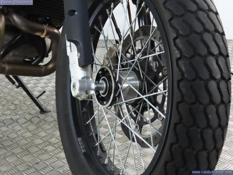 - With is large number boards, high slung exhaust, wide handlebars and spoked wheels it looks the part.