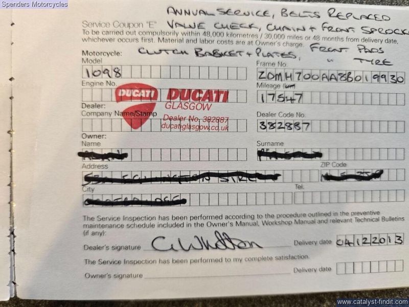 - Good Condition, 3 Months Warranty Available, Full Service History, Fresh 12 Months MOT, A Very Popular Model From Ducati, Looks Absolutely Stunning, Perfect For Weekend Fun, Looks Like It's Been Very Well Looked After, Features Include Brembo Brake Calipers, After-Market Mirrors, Tank Decal Protectors, Carbon Fibre Look Exhaust Silencer Guards/Front And Rear Hugger/Belly Pan, Dark Tinted Screen, Short Black Race Levers, Also Comes With Service Booklet, Owners Manual, Paperwork/Receipts, Full MOT History, V5 Logbook, HPI Clear,, Secure Today With A £50.00 Refundable Holding Deposit Upon Viewing, Please Call for More Info.