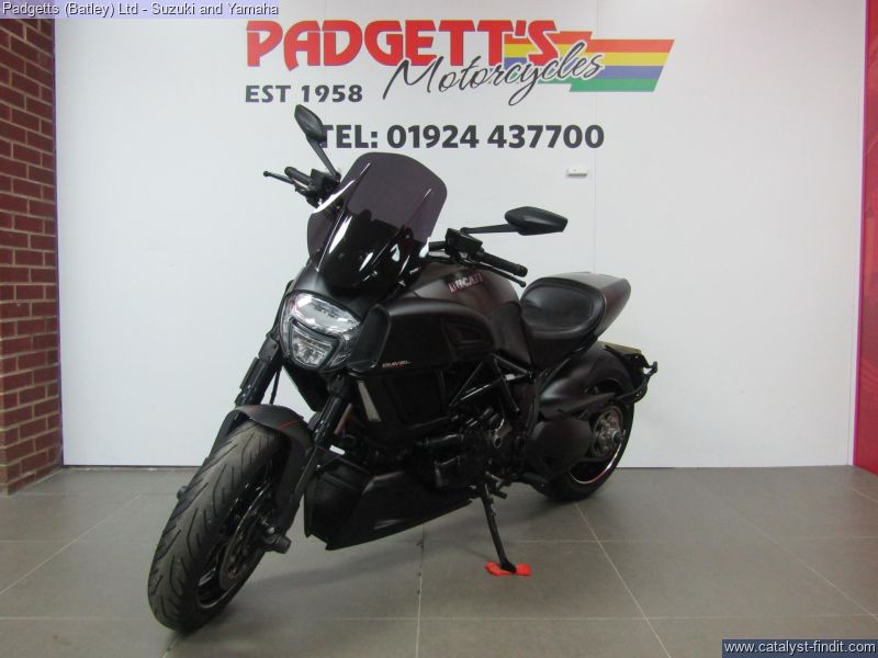 - We present here for sale this Ducati Diavel Carbon in Black. The bike has only covered 7,384 miles and is in great condition. The bike has been fitted with some superb extras including: - Puig Dark Smoke Screen, Evotech Swingarm & Spindle Protectors and Optimate Leasd. The bike comes complete with Original Owner’s Manual, 2 Keys, Service Record Showing Part Service History (3 Services – last @ 6,858 miles in March 2025 including Desmo Service) and Log book and is Datatag’ed. The bike is available for viewing and is well worth a look. Finance is available and is subject to status. Part Exchanges welcome. Nationwide delivery can be arranged from as little as £75. Usual Dealer Facilities including a Large range of clothing, helmets & accessories. Call Padgett's Motorcycles today to ensure that you don't miss out; Suzuki Sales Centre 01924 609808, Honda Sales Centre 01924 437700 and Yamaha Sales Centre 01924 478491.