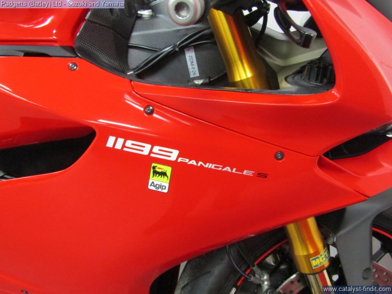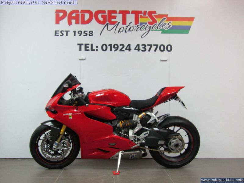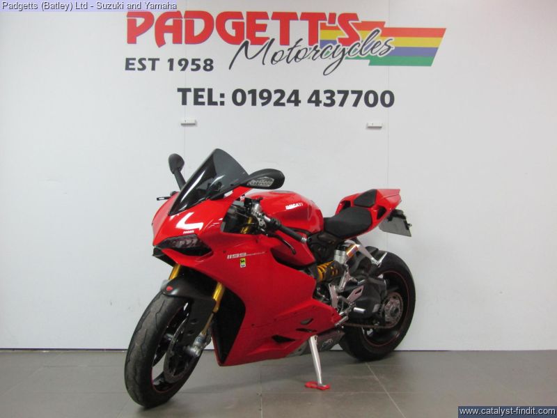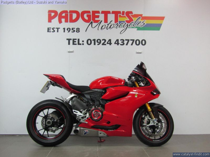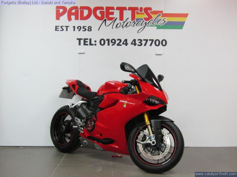 - We present here for sale this Ducati 1199 Panigale S in Red. The bike has only covered 8,388 miles and is in great condition. The bike has been fitted with some superb extras including: Termignoni Exhaust, Super Quadro Clear Clutch Cover, Tinted Screen, Tail Tidy, Ducati Performance Reservoirs and Tank Pad. The bike comes complete with Original Owner’s Manual, 2 Keys, Service Book Showing Part- Service History (3 Dealer Stamp – last in 06/12/2025 @ 8,388 miles) and Log book. The bike is available for viewing and is well worth a look. Finance is available and is subject to status. Part Exchanges welcome. Nationwide delivery can be arranged from as little as £75. Usual Dealer Facilities including a Large range of clothing, helmets & accessories. Call Padgett's Motorcycles today to ensure that you don't miss out; Suzuki Sales Centre 01924 609808, Honda Sales Centre 01924 437700 and Yamaha Sales Centre 01924 478491.
