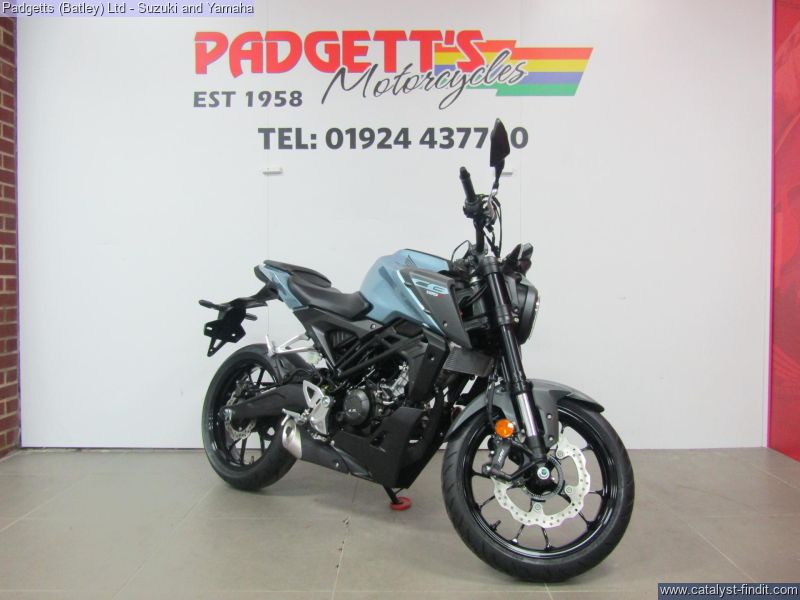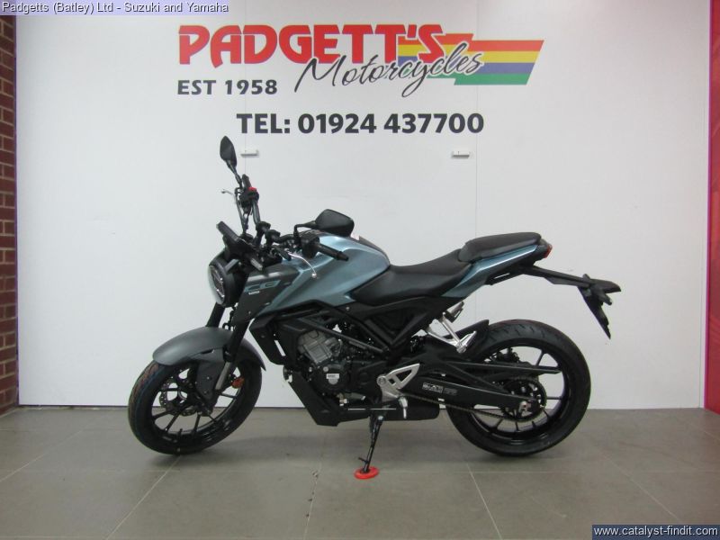 - We present here for sale this Honda CB125R. The CB125R packs concentrated performance into a stylish silhouette, offering an exciting riding experience for new riders. A small sibling of the awesome CB1000R – and therefore a member of the Neo Sports Café family – it makes an instant statement with bold styling enfolding a tubular steel frame. A state- of-the-art LCD dash and full LED lighting are premium features, but what will really get your attention is the extra power of the new 125cc DOHC engine and suspension precision of Showa SFF-BP USD forks. With an emphasis on minimalism, the more you ride the CB125R, the more your confidence will grow. While its compact size makes it easy to manage, its big bike features ensure it’s the perfect introduction to real-world motorcycling. The all-new, DOHC 4V single-cylinder engine produces an extra 1.2kW and 1.6Nm peak power and torque driving through a slick-changing, six-speed gearbox. Matching the engine upgrade are 41mm Showa SFF-BP USD front forks – a high-quality specification you’ll find on our bigger bikes – that deliver pinpoint control and steering, alongside full-size tyres and radial- mount front brake caliper with Inertial Measurement Unit (IMU) ABS management. If you’re ready to go to the next level, this is it. The bike is available for viewing and is well worth a look. Finance is available and is subject to status. Nationwide delivery can be arranged from as little as £60. Usual Dealer facilities including a Large range of clothing, helmets & accessories. Call Padgett's Motorcycles today to ensure that you don't miss out; Suzuki Sales Centre 01924 609808, Honda Sales Centre 01924 437700 and Yamaha Sales Centre 01924 478491.