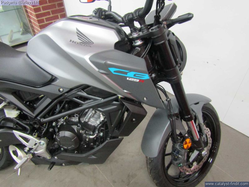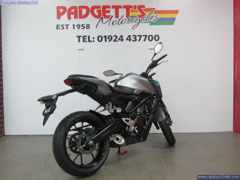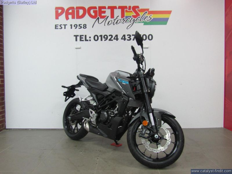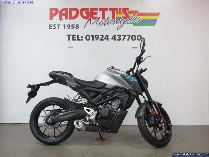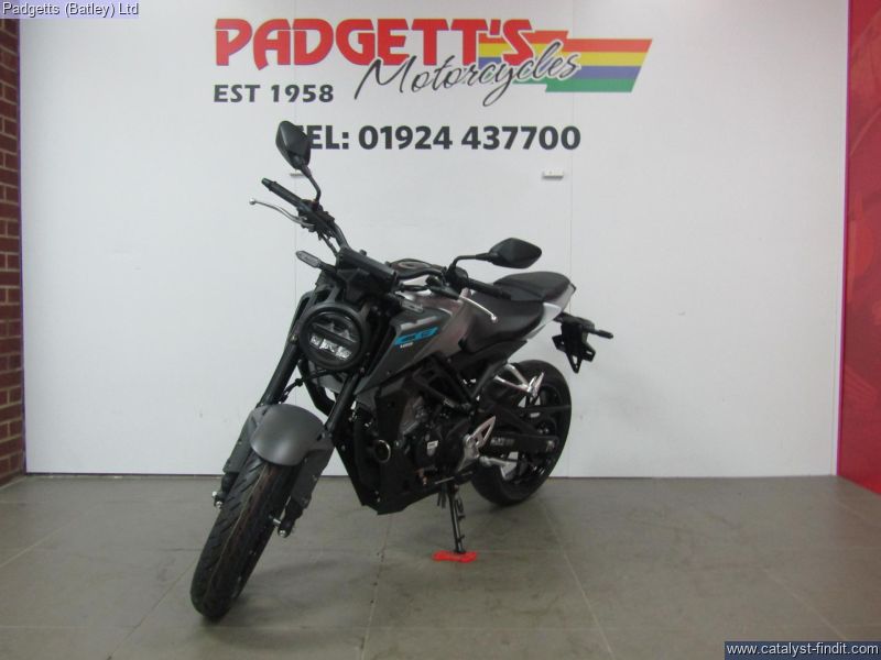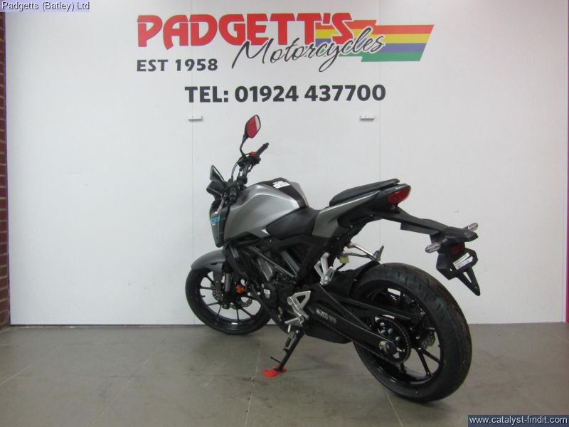 - We present here for sale this Honda CB125R. The CB125R packs concentrated performance into a stylish silhouette, offering an exciting riding experience for new riders. A small sibling of the awesome CB1000R – and therefore a member of the Neo Sports Café family – it makes an instant statement with bold styling enfolding a tubular steel frame. A state- of-the-art LCD dash and full LED lighting are premium features, but what will really get your attention is the extra power of the new 125cc DOHC engine and suspension precision of Showa SFF-BP USD forks. With an emphasis on minimalism, the more you ride the CB125R, the more your confidence will grow. While its compact size makes it easy to manage, its big bike features ensure it’s the perfect introduction to real-world motorcycling. The all-new, DOHC 4V single-cylinder engine produces an extra 1.2kW and 1.6Nm peak power and torque driving through a slick-changing, six-speed gearbox. Matching the engine upgrade are 41mm Showa SFF-BP USD front forks – a high-quality specification you’ll find on our bigger bikes – that deliver pinpoint control and steering, alongside full-size tyres and radial- mount front brake caliper with Inertial Measurement Unit (IMU) ABS management. If you’re ready to go to the next level, this is it. The bike is available for viewing and is well worth a look. Finance is available and is subject to status. Nationwide delivery can be arranged from as little as £60. Usual Dealer facilities including a Large range of clothing, helmets & accessories. Call Padgett's Motorcycles today to ensure that you don't miss out; Suzuki Sales Centre 01924 609808, Honda Sales Centre 01924 437700 and Yamaha Sales Centre 01924 478491. PLUS £85 OTR FEES