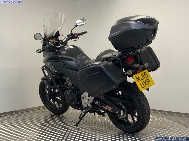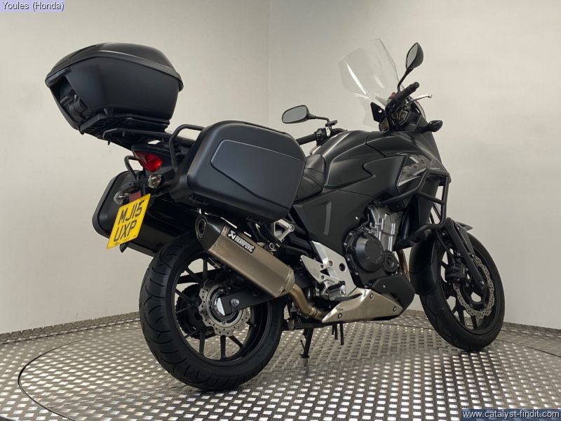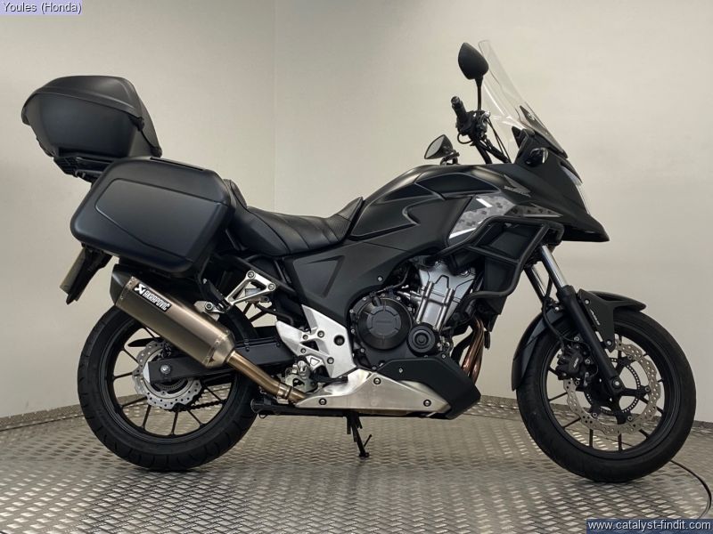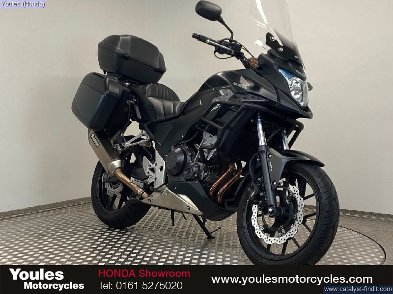 - Now available at Youles Honda Manchester, this 2015 Honda CB500X finished in Matt Black is a true gem. With only 5,855 miles from new and in excellent condition, this bike has been cherished by its previous owner and comes fully kitted out with a huge range of extras making it an outstanding all-rounder for commuting, touring, or weekend rides. Fitted Extras Include: 3x Honda Luggage panniers and top box, colour matched Crash bars added protection Givi Touring Screen for enhanced comfort on longer rides Heated Grips perfect for year-round riding Akrapovic Exhaust great looks and sound Comfort Seat for improved rider and pillion comfort Main Stand handy for maintenance and storage Comes complete with both keys and books Why Buy This Bike? The CB500X is known for being one of the most versatile and reliable middleweight machines on the market, and this particular example is immaculate and exceptionally well- equipped. With such low miles, its ready to give its next owner many years of dependable riding. This bike also comes with the Youles Lifetime Warranty for added peace of mind. ?? Call Youles Honda Manchester today on 0161 527 5020 to arrange a viewing or reserve this fantastic CB500X. Part exchanges welcome!