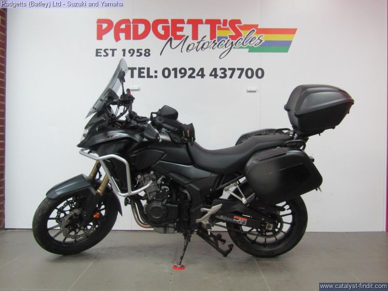 - We present here for sale this Honda CB500X in Black. The bike has only covered 6,596 miles and is in great condition. The bike has been fitted with some superb extras including: - Genuine Honda Engine Pipes, Genuine Honda Top Box, Genuine Honda Panniers, Genuine Honda Heated Grips Hand Guards, Puig Tall Screen and Givi Tank bag. The bike comes complete with Original Owner’s Manual, 2 Keys, Service Book showing Full Honda Service History and Log book. The bike is available for viewing and is well worth a look. Finance is available and is subject to status. Part Exchanges welcome. Nationwide delivery can be arranged from as little as £75. Usual Dealer Facilities including a Large range of clothing, helmets & accessories. Call Padgett's Motorcycles today to ensure that you don't miss out; Suzuki Sales Centre 01924 609808, Honda Sales Centre 01924 437700 and Yamaha Sales Centre 01924 478491.