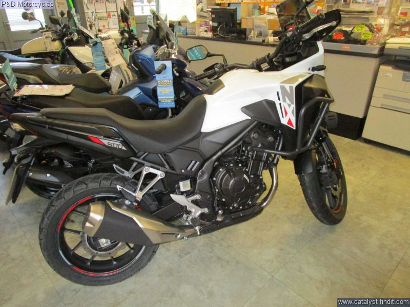 - JUST IN THIS PRACTICALLY NEW NX500 WITH THE ADVENTURE PACK FITTED. THESE REALLY ARE A CRACKING BIKE. ONLY A FEW MONTHS OLD AND WITH ONLY 122 MILES ON THE CLOCK. COMES WITH ALL THE BITS YOU NEED AND THE REMAINING LONG MANUFACTURERS WARRANTY. USUAL DEALER FACILITIES APPLY.