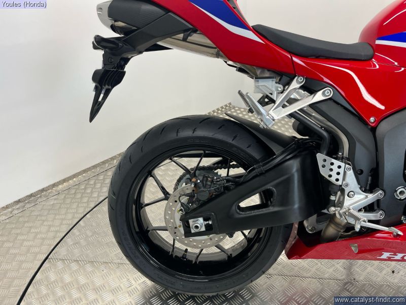 - The legend is back. The 2025 Honda CBR600RR returns to UK roads with its iconic Grand Prix Red finish accented by HRC white and blue detailing, paying homage to Honda’s racing heritage while packing cutting-edge performance and technology for the modern rider. Born on the racetrack and perfected for the road, the CBR600RR combines razor-sharp handling, advanced electronics, and Honda’s legendary inline-four engine — delivering the kind of exhilarating performance that made this machine an icon among sportsbike fans. Key Features: • 599cc inline-four engine – high-revving, smooth, and thrillingly responsive • 6-axis IMU for class-leading rider assistance and control • Selectable riding modes and Honda Selectable Torque Control (HSTC) • Quickshifter, cornering ABS, and ride-by-wire throttle for total precision • Aerodynamic winglets directly inspired by Honda’s MotoGP technology • Finished in striking Grand Prix Red with HRC white and blue details This bike represents the perfect fusion of Honda’s racing DNA and road-going refinement, engineered for riders who demand the ultimate in performance, feedback, and style. The CBR600RR comes brand new and unregistered, ready to go on a new 75 plate and backed by Honda’s 6-year manufacturer’s warranty plus the Youles Lifetime Warranty for complete peace of mind. ________________________________________ ?? Available now at Youles Honda Manchester. Don’t miss your chance to own a piece of Honda racing history — call us today on 0161 527 5020 to reserve yours or book a viewing.