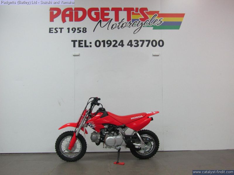 - We present here for sale this 2025 Honda CRF50F. Honda’s longest-running off road model. With its key operated ignition, the CRF50F opens the door to endless thrills and excitement for aspiring young riders. Easy to start, easy to use, and always fun. Widely recognised as the original mini bike, the CRF50F is the choice of first-time riders the world over. Its inverted fork, 49cc engine, easy-shifting gearbox with automatic clutch and low seat height make the CRF50F a cinch to ride. Built strong and solid, with big bike styling and racy new graphics, this CRF will soon have the fun meters of the smallest riders in the family running red - Honda red. A young rider needs confidence from day one. So we’ve made the CRF50F easy for the junior rider to get along with. It’s easy to start, just turn a key and hit the button. It’s easy to ride with a dependable, strong 420 chain and it’s easy to stop with powerful front and rear drum brakes. The CRF50F wears a striking new CRF family paint and bold new graphics to celebrate Honda’s off-road racing pedigree. Twinned with a reliable air-cooled engine powered by a maintenance-free Capacitor Discharge ignition (CDI). There’s no better place to start than here. The bike is available for viewing and is well worth a look. Finance is available and is subject to status. Part Exchanges welcome. Nationwide delivery can be arranged from as little as £75. Usual Dealer facilities including a Large range of clothing, helmets & accessories. Call Padgett's Motorcycles today to ensure that you don't miss out; Suzuki Sales Centre 01924 609808, Honda Sales Centre 01924 437700 and Yamaha Sales Centre 01924 478491.