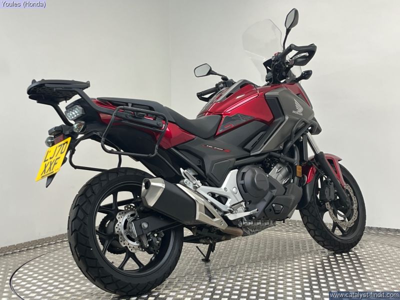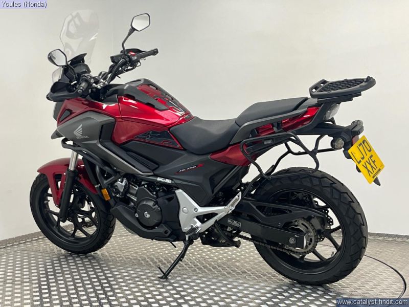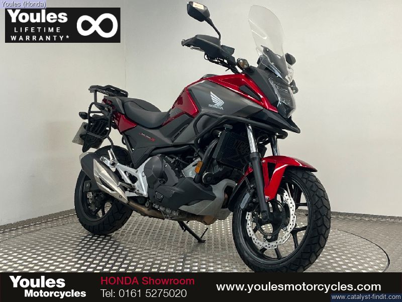 - Now available at Youles Honda Manchester, this stunning Honda NC750X DCT is finished in a beautiful deep red metallic and is a fantastic example of Honda’s renowned all-rounder. Coming on a 70 plate and having covered around 12,000 miles, this bike is in excellent condition and has clearly been very well looked after. (Please note: this bike is currently being used by one of our managers, so please call us for the most up-to-date mileage.) This NC750X comes equipped with a great range of practical extras, making it an even more capable machine for touring or commuting: • Nearly new Continental TKC 70 tyres – excellent all-weather, all-surface performance • Kappa pannier frames and top box rack – ready for your luggage • Heated grips – ideal for year-round riding • Larger touring screen – offering improved wind protection on longer journeys This is a superb opportunity to grab a well-equipped, DCT- equipped NC750X in fantastic condition – a perfect choice for riders seeking comfort, economy, and Honda’s legendary reliability. ?? Call Youles Honda Manchester today on 0161 527 5020 to arrange a viewing or to reserve this great bike before it’s gone! ________________________________________ Why Buy from Youles Honda? All our used bikes receive a 60-point safety check, including an oil and filter change if required and a full MOT. All technicians are factory trained. All bikes are HPI clear. Four months or 4,000 miles warranty, or the remainder of the manufacturer’s warranty. Includes the Youles Lifetime Warranty. Please see our terms and conditions on our website. Cars and bikes of any age or condition taken in part exchange. Nationwide delivery service available. Finance options including Hire Purchase (HP) or Personal Contract Purchase (PCP) with low monthly payments. All used vehicles are subject to a £75.00 document fee.
