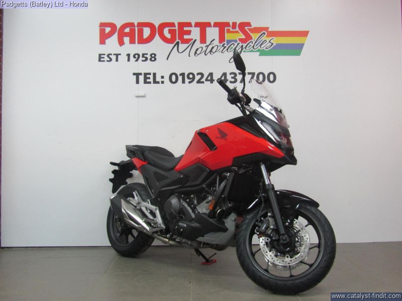 - We present here for sale this Honda NC750X. Looking for a versatile, all-round motorcycle? It’s right here. The long-legged, twin-cylinder NC750X does commuting, touring and everything else in between. And it’s been updated. The rugged styling is sharper, led by a redesigned LED headlight and a new 5-inch TFT screen features seamless Honda RoadSync smartphone connectivity. Dual discs now brake the front wheel for improved braking performance, while sustainable, coloured Durabio™ has been used in the bodywork. The NC750X also hides its secret genius; 23L of integral storage space, enough for a full-face adventure helmet. This isn’t just outside of the box thinking. It’s box in the bike thinking. The NC750X is not like other bikes. From the weekday commute to weekends away it packs the perfect level of performance, economy and comfort into a hugely enjoyable form. And in its own, ruggedly minimalist style. A mass- forward stance – thanks to muscular fuel tank and slim side panels – throw directly to tautly redrawn upper and lower middle fairings, featuring sharp new creases and detail lines. The new LED headlight is highly visible to other road users and powerful for nighttime riding and the screen offers plenty of wind and weather protection. And we’re looking forward. Which means zero environmental impact throughout the entire life of our products – for a future beyond our time. It may not be an easy goal to achieve but we will continue taking on the challenges without giving up. And the new NC750X is part of the start of this journey; it is the first Honda to utilise coloured Durabio™ – a sustainable bio resin – with six parts employed throughout the bike. With recycled plastic, rubber and resin materials also used in other areas of the bodywork, a total of 34% is now sustainable. The bike is available for viewing and is well worth a look. Finance is available and is subject to status. Part Exchanges welcome. Nationwide delivery can be arranged from as little as £75. Usual Dealer Facilities including a Large range of clothing, helmets & accessories. Call Padgett's Motorcycles today to ensure that you don't miss out; Suzuki Sales Centre 01924 609808, Honda Sales Centre 01924 437700 and Yamaha Sales Centre 01924 478491.