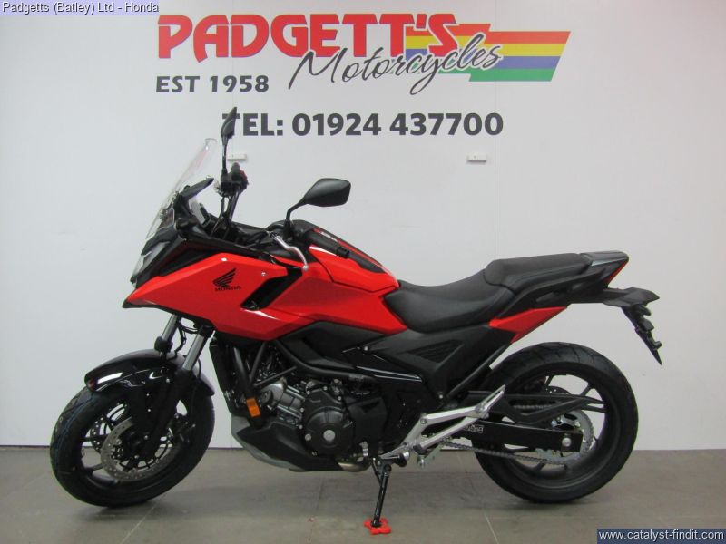 - We present here for sale this Honda NC750X. Looking for a versatile, all-round motorcycle? It’s right here. The long-legged, twin-cylinder NC750X does commuting, touring and everything else in between. And it’s been updated. The rugged styling is sharper, led by a redesigned LED headlight and a new 5-inch TFT screen features seamless Honda RoadSync smartphone connectivity. Dual discs now brake the front wheel for improved braking performance, while sustainable, coloured Durabio™ has been used in the bodywork. The NC750X also hides its secret genius; 23L of integral storage space, enough for a full-face adventure helmet. This isn’t just outside of the box thinking. It’s box in the bike thinking. The NC750X is not like other bikes. From the weekday commute to weekends away it packs the perfect level of performance, economy and comfort into a hugely enjoyable form. And in its own, ruggedly minimalist style. A mass- forward stance – thanks to muscular fuel tank and slim side panels – throw directly to tautly redrawn upper and lower middle fairings, featuring sharp new creases and detail lines. The new LED headlight is highly visible to other road users and powerful for nighttime riding and the screen offers plenty of wind and weather protection. And we’re looking forward. Which means zero environmental impact throughout the entire life of our products – for a future beyond our time. It may not be an easy goal to achieve but we will continue taking on the challenges without giving up. And the new NC750X is part of the start of this journey; it is the first Honda to utilise coloured Durabio™ – a sustainable bio resin – with six parts employed throughout the bike. With recycled plastic, rubber and resin materials also used in other areas of the bodywork, a total of 34% is now sustainable. The bike is available for viewing and is well worth a look. Finance is available and is subject to status. Part Exchanges welcome. Nationwide delivery can be arranged from as little as £75. Usual Dealer Facilities including a Large range of clothing, helmets & accessories. Call Padgett's Motorcycles today to ensure that you don't miss out; Suzuki Sales Centre 01924 609808, Honda Sales Centre 01924 437700 and Yamaha Sales Centre 01924 478491. PLUS £176 OTR FEES