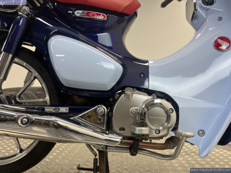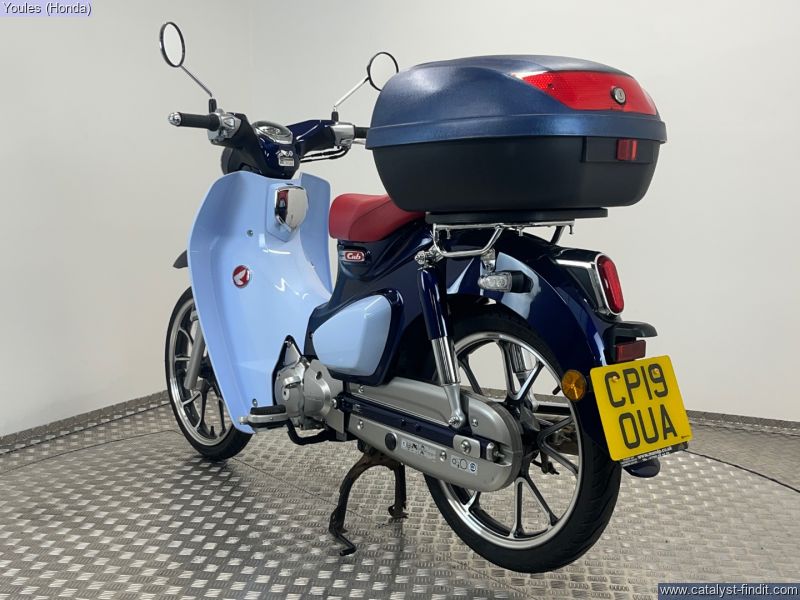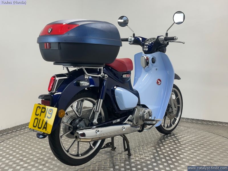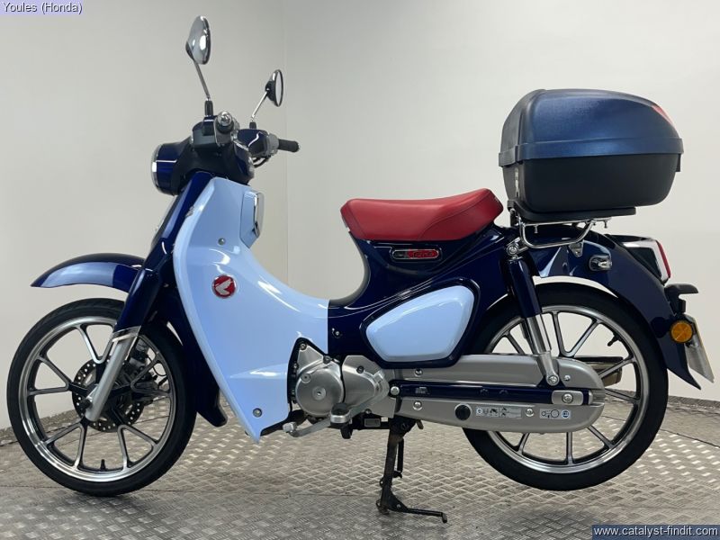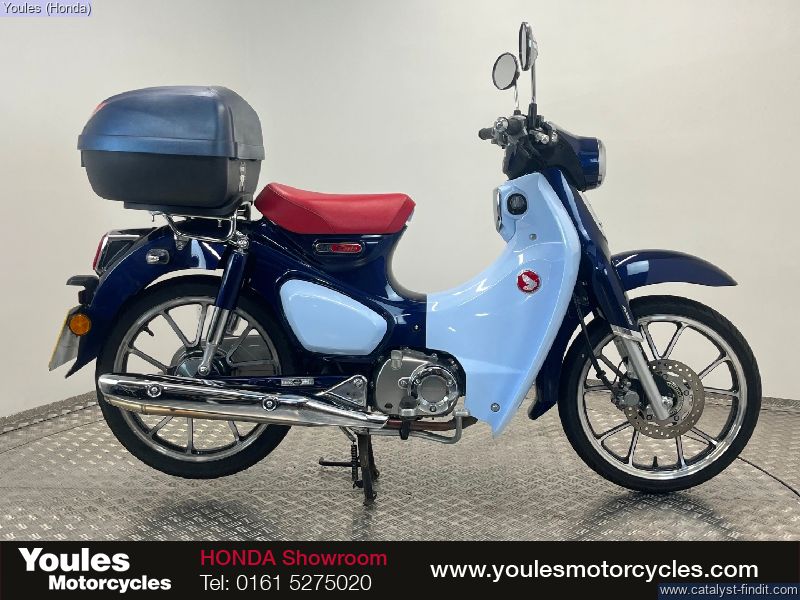 - This 19 plate Honda C125 Super Cub is in superb condition and has only covered 5,806 miles from new. The bike comes with a pre-fitted top box, making it perfect for a practical, fuel-efficient commuter or for anyone wanting to enjoy classic scooter rallies without worrying about reliability. Its timeless styling, combined with Honda’s legendary dependability, makes this an ideal all-rounder. Why Buy from Youles Honda? All our used bikes receive a 60-point safety check, including an oil and filter change if required and a full MOT. All technicians are factory trained All bikes are HPI clear Four months or 4,000 miles warranty, or the remainder of manufacturer’s warranty Cars and bikes of any age or condition taken in part exchange Nationwide delivery service available Finance options including Hire Purchase (HP) or Personal Contract Purchase (PCP) with low monthly payments All used vehicles are subject to a £75.00 document fee