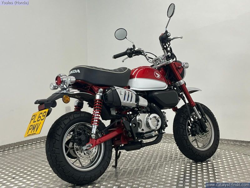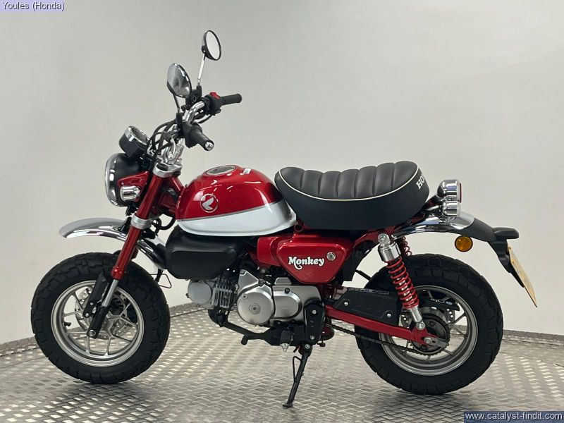 - Now available at Youles Honda Manchester, this fantastic 69 -plate Honda Z125 Monkey comes finished in classic Honda Red and is in superb condition throughout. With only 6,688 miles from new, it’s a brilliant opportunity to own one of Honda’s most fun and characterful machines at a great saving. This bike has clearly been loved, coming with: • Factory-fitted Honda Alarm System • Both original keys • Both books • Full service history • Brand-new Yuasa battery just fitted A true modern classic with retro styling, lightweight handling and bags of personality—this Monkey is perfect for city riding, weekend fun or as a funky second bike. ________________________________________ Why Buy from Youles Honda? All our used bikes receive a 60-point safety check, including an oil and filter change if required and a full MOT. All technicians are factory trained All bikes are HPI clear Four months or 4,000 miles warranty, or the remainder of manufacturer’s warranty Cars and bikes of any age or condition taken in part exchange Nationwide delivery service available Finance options including Hire Purchase (HP) or Personal Contract Purchase (PCP) with low monthly payments All used vehicles are subject to a £75.00 document fee ________________________________________ Like the look of it? Call us today on 0161 527 5020 to reserve this amazing little Monkey!