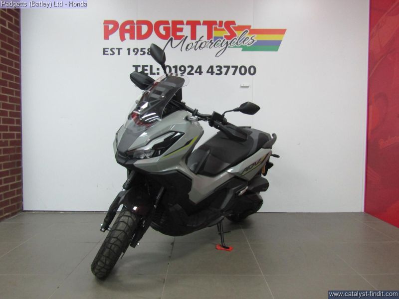- We present here for sale this 2026 Honda ADV350. Confidence. Feel it when you ride the ADV350 scooter. Sporty engine power meets a robust, smooth-running chassis and new rear suspension for added comfort to cover terrain with ease. With auto-signal cancellation, the ADV350 isn’t just safe – it’s functional. It’s not all about muscle though. The 5” TFT Meter lets you gauge your ride in stunning clarity and keeps you connected with Honda RoadSync integration for access to phone calls, music and navigation. The ADV350. You know what it can do. Experience the ADV350, where big scooter technology meets adventure DNA from our X-ADV. Weighing just 186kg, it’s equipped with a strong engine for effortless urban travel. Enjoy a smooth ride with long-travel RR rear suspension, providing better performance and enhanced comfort. The ADV350 handles light off-road paths and unpaved tracks with ease, thanks to its extra ground clearance and block-pattern tyres. Wherever your day leads, the ADV350 is ready to take you there. While tough adventure styling sets the ADV350 apart, we’ve ensured it stays true to what big scooters are all about comfort and practicality. The seat, contoured for support, is just 795mm high, making ground reach easy. There’s 48L of under-seat storage—enough for two full-face helmets—plus a glovebox with a USB Type-C socket. Under-seat LED lighting improves visibility in the compartment at night. The screen adjusts in four stages, allowing you to tailor the height and angle to your needs. Set high, it reduces fatigue by directing air around your shoulders on longer journeys. Set low, it allows a cooling breeze, perfect for city rides. Ready to go? Just keep the Smart Key in your pocket—it arms the ignition system, opens the seat, and operates the optional Smart Top Box, locking it as you walk away. The 5-inch TFT meter adds a premium touch, providing clear, advanced digital information at a glance. Stay connected on the move with Honda RoadSync, linking your Android™ or iOS™ device for calls and music. All lighting is LED, led by aggressive dual headlights, with Emergency Stop Signal (ESS) and Auto Signal Cancellation, ensuring you're seen and safe on the road. The bike is available for viewing and is well worth a look. Finance is available and is subject to status. Part Exchanges welcome. Nationwide delivery can be arranged from as little as £75. Usual Dealer facilities including a Large range of clothing, helmets & accessories. Call Padgett's Motorcycles today to ensure that you don't miss out; Suzuki Sales Centre 01924 609808, Honda Sales Centre 01924 437700 and Yamaha Sales Centre 01924 478491. PLUS £121 OTR FEES