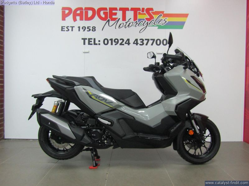 - We present here for sale this 2026 Honda ADV350. Confidence. Feel it when you ride the ADV350 scooter. Sporty engine power meets a robust, smooth-running chassis and new rear suspension for added comfort to cover terrain with ease. With auto-signal cancellation, the ADV350 isn’t just safe – it’s functional. It’s not all about muscle though. The 5” TFT Meter lets you gauge your ride in stunning clarity and keeps you connected with Honda RoadSync integration for access to phone calls, music and navigation. The ADV350. You know what it can do. Experience the ADV350, where big scooter technology meets adventure DNA from our X-ADV. Weighing just 186kg, it’s equipped with a strong engine for effortless urban travel. Enjoy a smooth ride with long-travel RR rear suspension, providing better performance and enhanced comfort. The ADV350 handles light off-road paths and unpaved tracks with ease, thanks to its extra ground clearance and block-pattern tyres. Wherever your day leads, the ADV350 is ready to take you there. While tough adventure styling sets the ADV350 apart, we’ve ensured it stays true to what big scooters are all about comfort and practicality. The seat, contoured for support, is just 795mm high, making ground reach easy. There’s 48L of under-seat storage—enough for two full-face helmets—plus a glovebox with a USB Type-C socket. Under-seat LED lighting improves visibility in the compartment at night. The screen adjusts in four stages, allowing you to tailor the height and angle to your needs. Set high, it reduces fatigue by directing air around your shoulders on longer journeys. Set low, it allows a cooling breeze, perfect for city rides. Ready to go? Just keep the Smart Key in your pocket—it arms the ignition system, opens the seat, and operates the optional Smart Top Box, locking it as you walk away. The 5-inch TFT meter adds a premium touch, providing clear, advanced digital information at a glance. Stay connected on the move with Honda RoadSync, linking your Android™ or iOS™ device for calls and music. All lighting is LED, led by aggressive dual headlights, with Emergency Stop Signal (ESS) and Auto Signal Cancellation, ensuring you're seen and safe on the road. The bike is available for viewing and is well worth a look. Finance is available and is subject to status. Part Exchanges welcome. Nationwide delivery can be arranged from as little as £75. Usual Dealer facilities including a Large range of clothing, helmets & accessories. Call Padgett's Motorcycles today to ensure that you don't miss out; Suzuki Sales Centre 01924 609808, Honda Sales Centre 01924 437700 and Yamaha Sales Centre 01924 478491. PLUS £121 OTR FEES