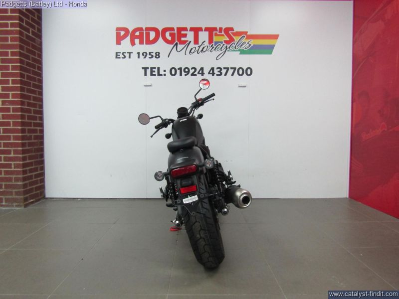 - We present here for sale this Honda CMX500S Rebel. FEEL FREE. Make your mark on it. The CMX500 Rebel is all about freedom for all motorcyclists, particularly A2 licence holders. With a strong, liquid-cooled, parallel twin- cylinder engine cradled in low chassis and updated suspension, lighting, comfort and instruments, it’s a stunning looking bike – a blank canvas – and one that’s ready for whatever your imagination has in store for it. The Rebel takes a different road. Powered by a proven parallel twin-cylinder engine, the response is friendly, smooth and linear – ideal if you're stepping up from a smaller bike. Thanks to a new exhaust, it’s also now EURO5 compliant, while the addition of an assist-and-slipper clutch aids gearchanges with a 30% lighter lever feel. The riding position is relaxed as you sit, arms outstretched, into the low seat height, ready for the highway. Even at low speed, the Rebel remains comfortable and easy to manage. The bike is available for viewing and is well worth a look. Finance is available and is subject to status. Part Exchanges welcome. Nationwide delivery can be arranged from as little as £75. Usual Dealer facilities including a Large range of clothing, helmets & accessories. Call Padgett's Motorcycles today to ensure that you don't miss out; Suzuki Sales Centre 01924 609808, Honda Sales Centre 01924 437700 and Yamaha Sales Centre 01924 478491.