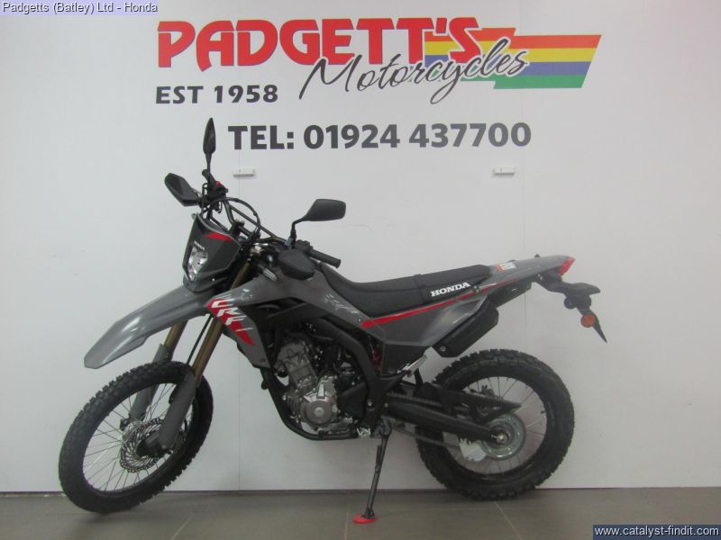 - We present here for sale this Honda CRF300L. The CRF300L is the ultimate lightweight dual-purpose machine. The qualities that make it so good off–road – slim proportions, peppy throttle response, agile steering and supple suspension – also make it brilliant around town. Awaken the weekday commute with its enjoyable all-round performance and agile handling. The CRF300 Rally is built for the more adventurous riders, adding long-range ability and comfort to its off-road performance. The CRF300L has rugged lightweight fairing and now features a new LED headlight and indicators, ensuring a big presence on the road day or night, improving visibility for the rider and other road users. The slim proportions of the fuel tank and seat, contoured for comfort and easy ground reach, make you feel in control of the bike. A USB type-c charger is available as an optional accessory and can be fitted next to the meter panel for convenience on the move. The 880mm seat height, and upright riding position provide natural control and comfort for riding on any terrain. Whether navigating city streets or conquering new trails – or both in a day – the CRF300L is born ready. The bike is available for viewing and is well worth a look. Finance is available and is subject to status. Part Exchanges welcome. Nationwide delivery can be arranged from as little as £75. Usual Dealer Facilities including a Large range of clothing, helmets & accessories. Call Padgett's Motorcycles today to ensure that you don't miss out; Suzuki Sales Centre 01924 609808, Honda Sales Centre 01924 437700 and Yamaha Sales Centre 01924 478491. PLUS £121 OTR FEES