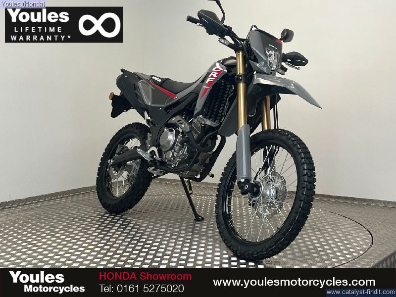 - Now in stock at Youles Honda Manchester, the Honda CRF300L arrives finished in Honda’s Swift Grey, combining aggressive off-road styling with genuine on-road practicality. The CRF300L is a true dual-purpose machine – light, agile, and confidence-inspiring on the road, while remaining massively capable when taken off the beaten track. Whether you’re looking for an everyday commuter with rugged looks or a green-laning tool to take exploring, the CRF300L is built to deliver. Key Highlights: • Brand new and unregistered • Finished in Swift Grey • Lightweight, slim, and agile for both city streets and trails • Perfect balance of road practicality and off-road capability • Ultra-reliable Honda single-cylinder engine • Comfortable upright riding position for all-day usability The Honda CRF300L is the perfect choice for riders who demand versatility without compromise – a bike as fun on the trail as it is practical in town.