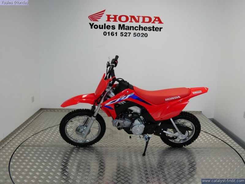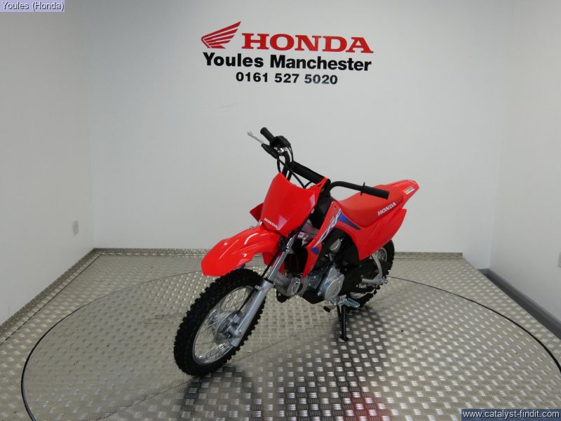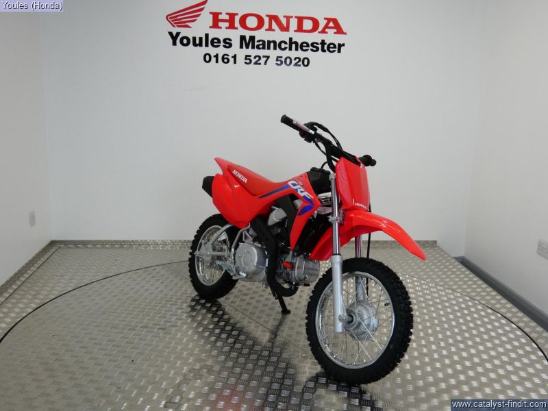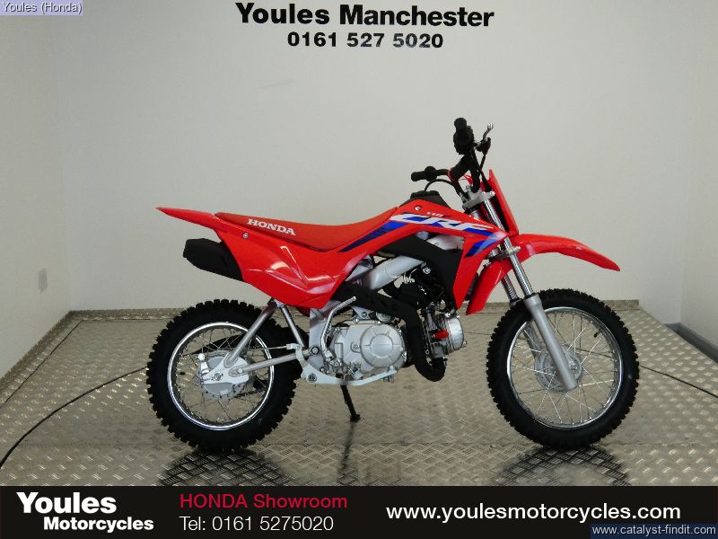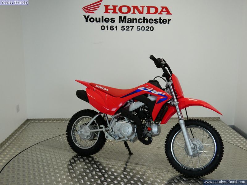 - The all-new 2025 Honda CRF110 is the ideal bike for young riders ready to take their first steps into off-road riding. Finished with updated graphics inspired by its bigger brothers, the CRF250 and CRF450, this bike looks the part while delivering Honda’s legendary reliability and performance. Designed to grow with your rider, the CRF110 features a throttle restrictor screw, allowing the bike’s power to be limited for beginners. As your young rider gains confidence and skill, the restrictor can easily be removed to unlock the full potential of the 110cc engine. With Honda’s proven build quality, lightweight design, and rider-friendly ergonomics, the CRF110 is the perfect introduction to off-road motorcycling for any young enthusiast. Reserve yours today at Youles Honda Manchester and give your young rider the best start in their motorcycling journey!