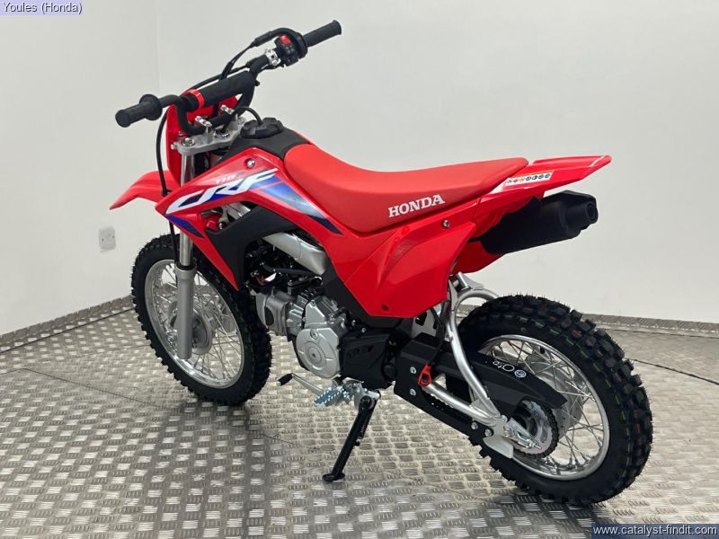- Now in stock at Youles Honda Manchester Looking to get your young rider started on the trails? The 2025 Honda CRF110F is the ideal off-road bike for juniors taking their first steps into motocross or off-road riding. With its legendary Honda build quality, reliable performance, and confidence-inspiring design, the CRF110F is a class leader in youth dirt bikes. Key Features: 109cc air-cooled 4-stroke engine smooth, predictable power Electric start and kick-start backup for convenience and reliability Automatic clutch with 4-speed gearbox great for learning gear control without stalling Low seat height and lightweight chassis designed for smaller riders Durable off-road tyres and long-travel suspension to handle tough terrain Updated 2025 graphics inspired by Hondas full-size motocross range Whether it's trail riding or backyard fun, the CRF110F delivers hours of adventure for the next generation of riders. Call Youles Honda Manchester on 0161 527 5020 to reserve yours today Part exchange welcome