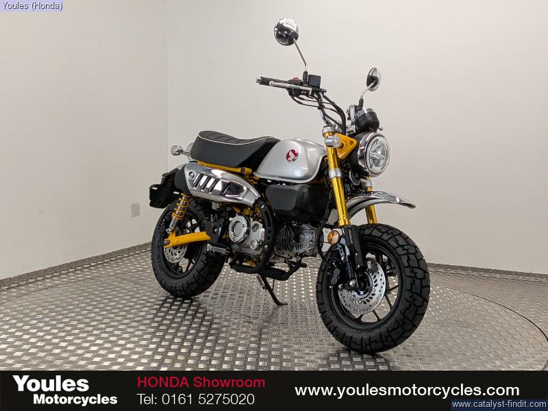 - The 2026 Honda Z125 Monkey is pure fun on two wheels, finished in the eye-catching Turmeric Yellow that perfectly suits this iconic mini-bike’s playful character. This example is brand new and unregistered, meaning it will be supplied on the latest plate to its first owner. Powered by Honda’s brilliant air-cooled 125cc four-stroke single-cylinder engine, the Monkey delivers smooth, reliable performance with fantastic fuel economy. Its compact size, wide handlebars and low seat height make it incredibly easy and confidence-inspiring to ride, whether you’re a new rider, a seasoned motorcyclist or simply looking for something fun and different. Despite its size, the Z125 Monkey is built with premium Honda quality, featuring USD front forks, twin rear shocks, ABS braking and full LED lighting. It’s a bike that turns heads everywhere it goes and puts a smile on your face every time you ride it. Small bike, massive fun – the Monkey proves that enjoyment isn’t measured in engine size. ?? Call us today on 0161 527 5020 to reserve this bike or arrange a viewing at Youles Honda Manchester.
