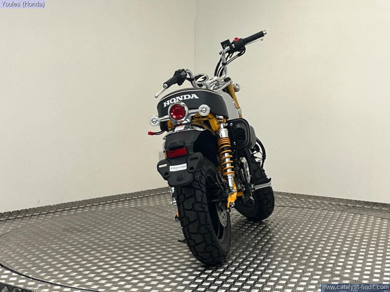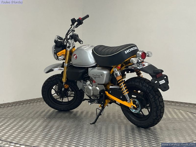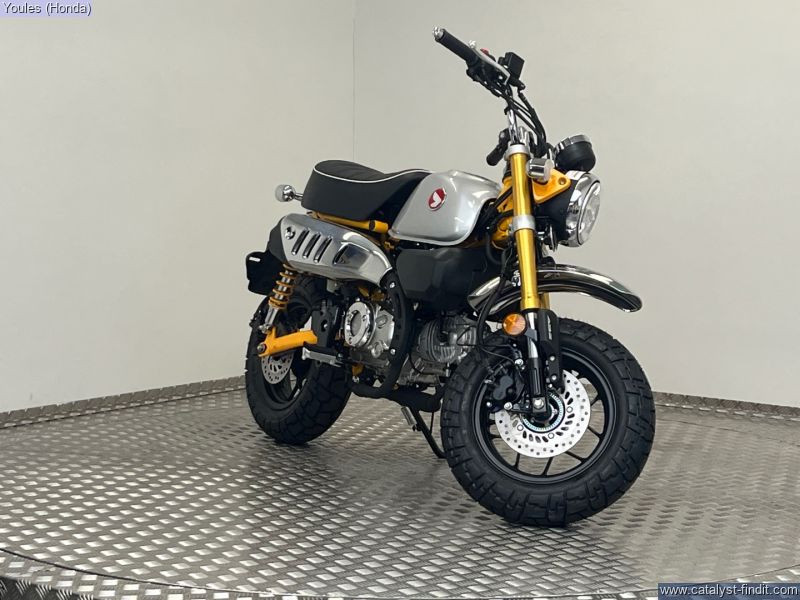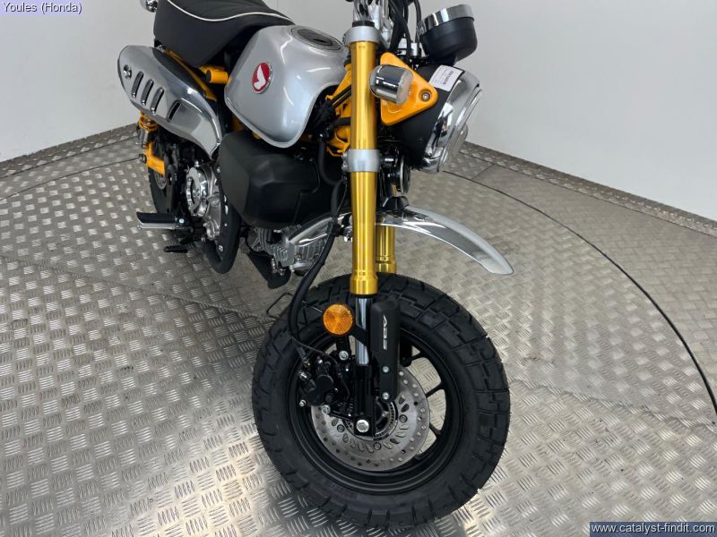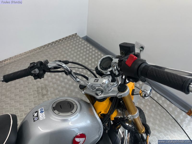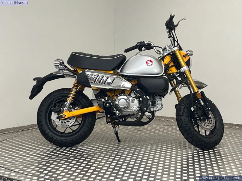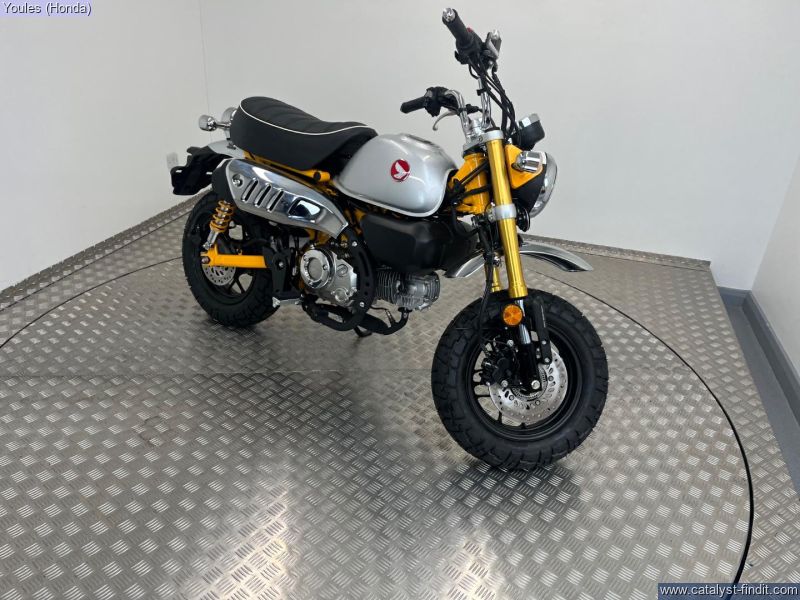 - There’s nothing else quite like a Monkey. It has style all of its own. And character like nothing else. Chromed high- rise handlebars, plus frame, swingarm and shock absorbers painted the same colour as the peanut fuel tank – and the high-level mudguards – all draw attention, as do the chunky block-section tyres. But underneath it has a brand-new, fuel-efficient air-cooled 125cc engine and 5-speed gearbox bolted into a sturdy chassis that features IMU-controlled ABS braking. It’s also small and light, just 104kg, with a comfy seat set just 775mm from the ground. A small bike with a big heart, built to put the fun in your function. That’s Monkey.