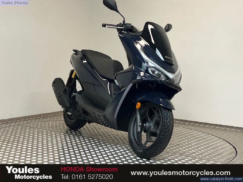 - Experience the perfect blend of modern style, efficiency, and comfort with the 2025 Honda PCX125 DX, now available in a stunning blue finish. Built for riders who demand more from their daily commute, the new PCX125 DX takes convenience and sophistication to the next level whether youre navigating busy city streets or cruising further afield. Key Features: Smooth and efficient 125cc eSP+ engine with Idling Stop system New TFT display with Honda RoadSync smartphone connectivity Smart Key system with remote top box control (where fitted) LED lighting all round with refined styling and sharp lines Underseat storage for a full-face helmet Lightweight, comfortable, and ideal for new and experienced riders alike Now with refined comfort, enhanced tech, and the premium DX trim, the 2025 PCX125 is more connected and capable than ever before. Covered by Honda's 6-year manufacturer warranty (terms and conditions apply) for total peace of mind. ________________________________________ Call Youles Honda Manchester on 0161 527 5020 to reserve your new PCX125 DX today. Part exchange welcome | Finance available | Nationwide delivery available