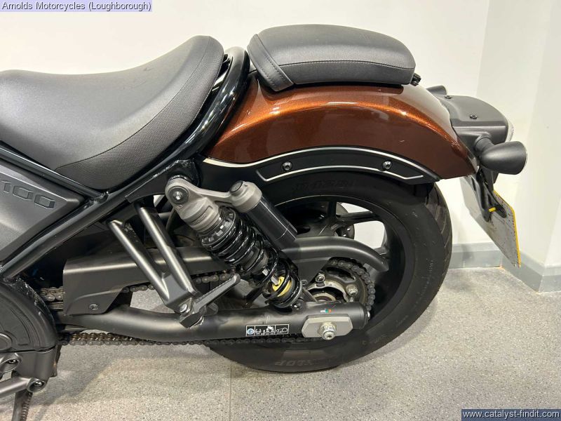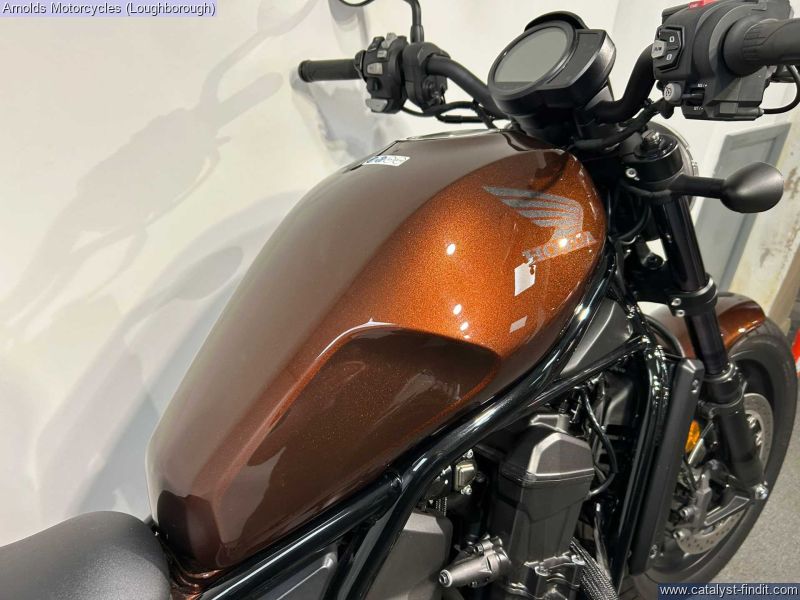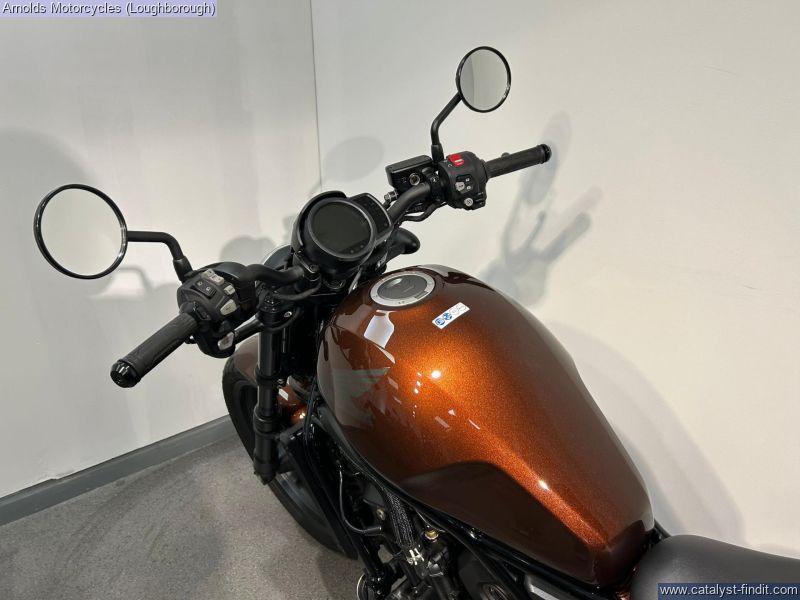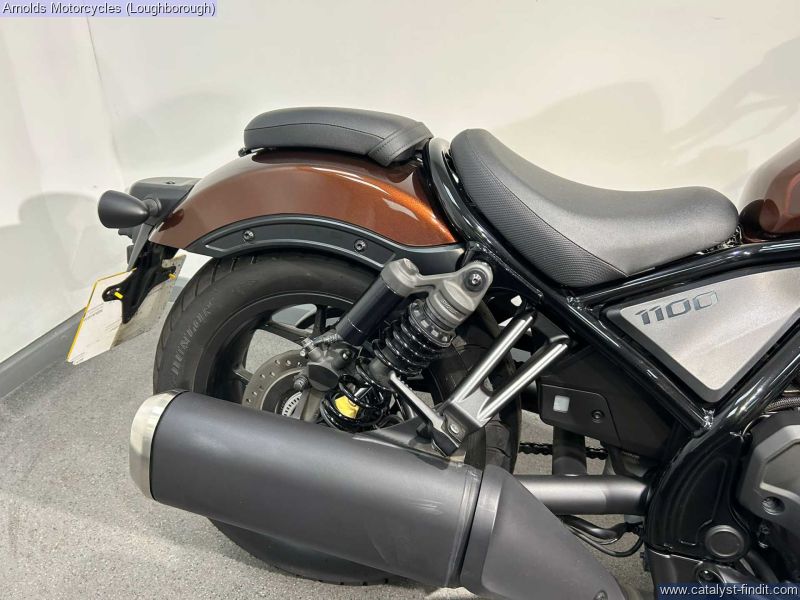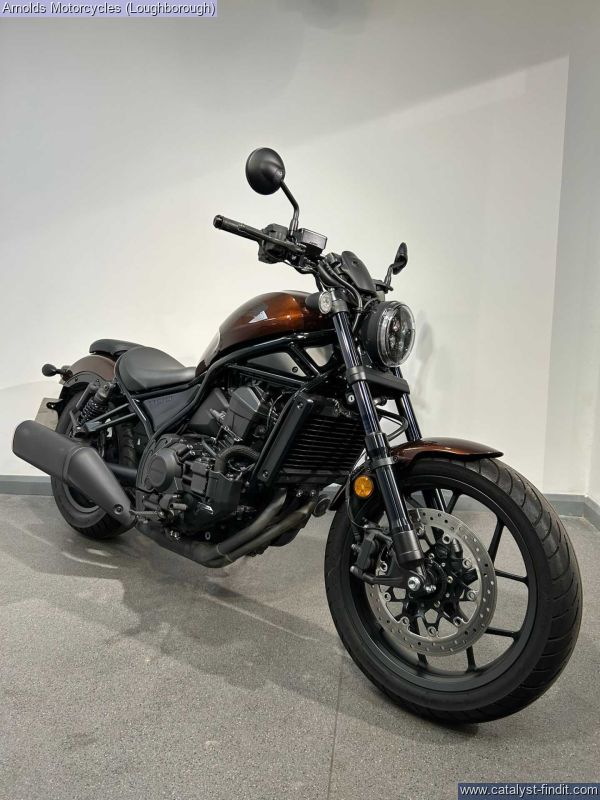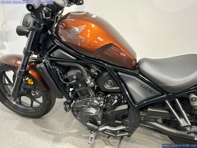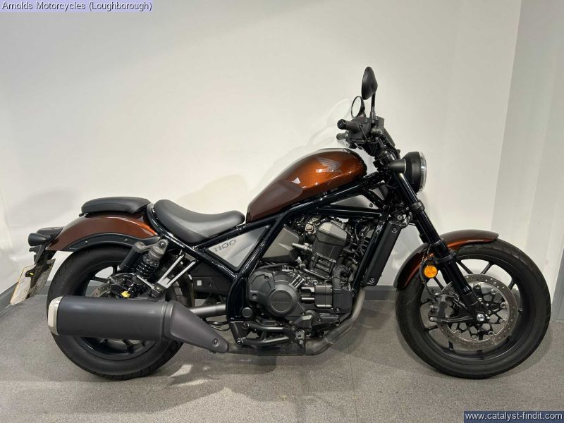 - Honda Rebel 1100 finished in Bronze, absolutely gorgeous. The rebel is a fantastic choice of machine with a torquey, reliable 1100cc twin motor housed in a lightweight chassis with a low seat height, complimented by the famous Honda DCT gearbox. This one is in great condition with 2 service entries in the book, supplied freshly serviced & MOT'd with our 6 Month/2000 mile warranty. Honda heated grips fitted.