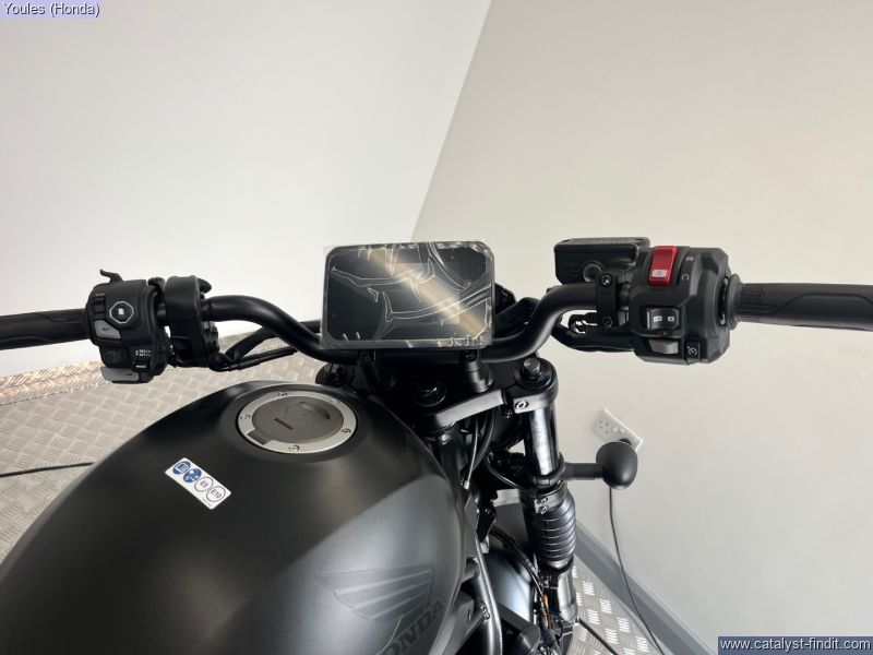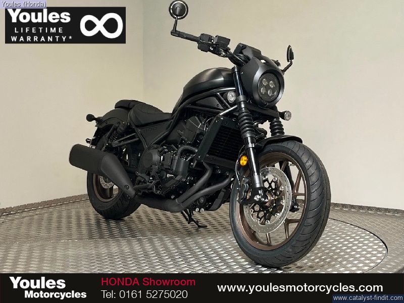 - Brand New & Unregistered Honda CMX1100 Rebel DCT Special Edition – Matte Ballistic Black Metallic Now available at Youles Honda Manchester, this stunning brand new, unregistered CMX1100 Rebel DCT Special Edition is finished in the exclusive Matte Ballistic Black Metallic colourway — a limited-time finish that truly sets this bike apart from the standard Rebel 1100. This Special Edition is an enhanced version of Honda’s already impressive Rebel 1100, combining muscular cruiser styling with modern technology and effortless performance thanks to the smooth DCT automatic transmission. It delivers relaxed yet responsive riding whether you’re cruising through the city or stretching its legs on open roads. What really makes this bike stand out is the factory-fitted Genuine Honda accessories, all perfectly colour matched and designed to complement the bike’s aggressive stance and premium finish. These include: • Colour matched headlight cowl • Fork boots • Custom seat • Bar end mirrors • Bronze painted special edition wheels Together, these upgrades give the Rebel a unique custom look straight from the showroom, saving you the cost and hassle of adding accessories later. Being unregistered, you’ll be the very first owner, enjoying the full manufacturer warranty and the peace of mind that comes with a brand new Honda. This is a rare opportunity to secure a Special Edition model in a standout colour that won’t be available for long. If you’re looking for a premium cruiser with distinctive styling, modern convenience, and effortless riding thanks to DCT, this CMX1100 Rebel Special Edition is not to be missed. ?? Call us today on 0161 527 5020 to reserve this bike or arrange a viewing.