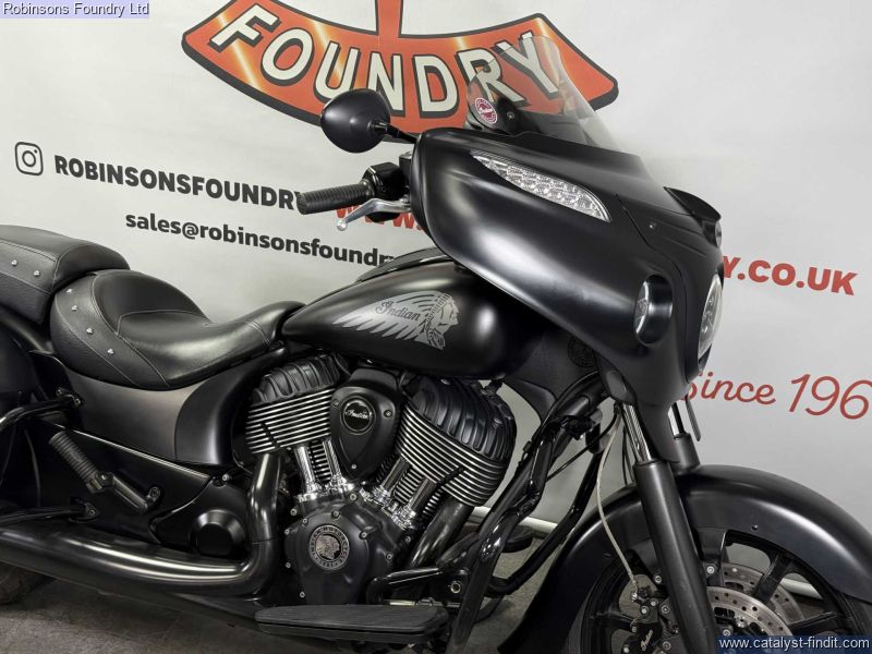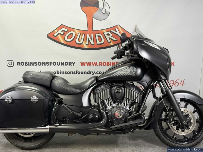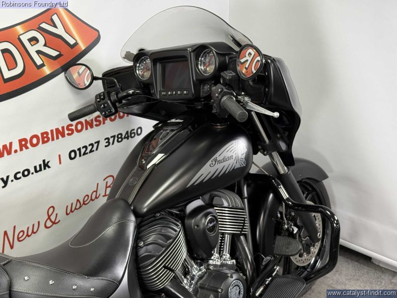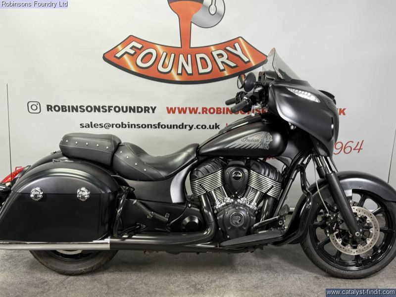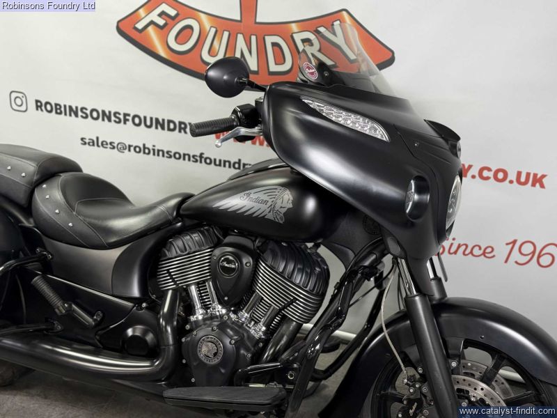 - The 2018 Indian Chieftain Dark Horse is a commanding cruiser that combines classic American touring presence with modern performance and technology. Powered by a smooth 1811cc V- twin engine, it delivers strong torque and effortless cruising ability, making it ideal for long-distance rides as well as relaxed weekend journeys. Its aggressive styling, blacked-out finish, and muscular stance give the Dark Horse a distinctive road presence that turns heads wherever it goes.Built for comfort and convenience, the Chieftain Dark Horse comes equipped with a full touring setup, including integrated hard luggage, a comfortable saddle, and advanced infotainment features. The chassis and suspension are designed to handle fully loaded touring without compromising stability or rider control, while the low center of gravity makes it approachable despite its size.Overall, the 2018 Indian Chieftain Dark Horse is a premium touring cruiser that blends power, style, and comfort. Its 1811cc engine, bold design, and rider-focused features make it an excellent choice for anyone seeking a capable and visually striking motorcycle for long rides or daily enjoyment.All vehicles are subject to a comprehensive pre delivery inspection prior to collection and come with a minimum of 6 months MOT and 3 months/3000 mile warranty - with the option to extend (subject to T&Cs). HPI Checked. Walkaround videos and delivery available upon request. Secure with £100 deposit. Finance available (T&C's Apply). Our used stock changes constantly please contact us if you cannot see what you are looking for.
