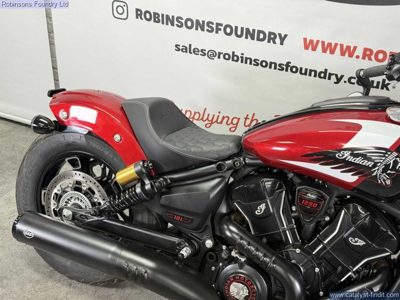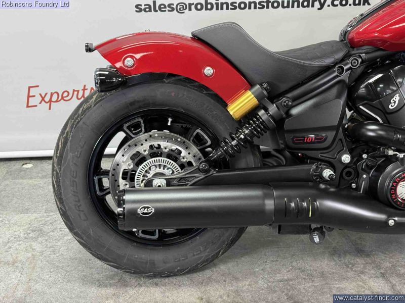 - This 2025 Indian Scout 101 is a striking, performance- focused cruiser showing just 2,000 miles. Designed as the most dynamic model in the Scout lineup, the Scout 101 delivers strong, responsive V-twin performance combined with sharp handling and premium componentry. Its muscular stance and modern cruiser styling give it serious road presence while remaining comfortable and confidence-inspiring to ride.This example is fitted with an S&S exhaust, adding extra character and enhancing the bike’s overall presence while complementing its performance-oriented nature. With low mileage and modern engineering throughout, the Scout 101 offers an engaging ride whether cruising, commuting, or enjoying weekend roads. Built by Indian Motorcycle, it reflects the brand’s focus on blending heritage style with contemporary capability.Overall, this is a very desirable, low-mileage example of the Indian Scout 101, offering strong performance, premium styling, and the added appeal of the S&S exhaust upgrade. A great opportunity for riders looking for a modern cruiser with genuine attitude and presence.Al vehicles are subject to a comprehensive pre delivery inspection prior to collection and come with a minimum of 6 months MOT and 3 months/3000 mile warranty - with the option to extend (subject to T&Cs). HPI Checked. Walkaround videos and delivery available upon request. Secure with £100 deposit. Finance available (T&C's Apply).