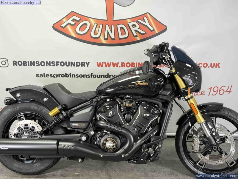 - The 101 Scout from Indian Motorcycle uses a 1250 cc liquid- cooled V-Twin engine producing 111 hp and 109 Nm of torque. Its 6-speed transmission and belt final drive work with that engine to deliver smooth, responsive power. The bike weighs 249 kg (running order) and offers a seat height of 680 mm making it reasonably accessible while still carrying strong cruiser performance.Suspension and braking hardware includ fully adjustable inverted front forks and adjustable piggyback rear shocks plus dual-disc Brembo brakes. These elements combine to provide stable, confident handling and effective stopping power under a variety of riding conditions.Standard equipment features include ABS, multip ride modes, cruise control, traction control, keyless ignition, and a 4-inch Ride Command display with GPS navigation, Bluetooth connectivity, and USB charging/data port. Those modern touches enhance usability, convenience, and safety for everyday riding or longer journeys.The 101 Scout also brings distinctive style through specific badging, exclusive paint and graphics, and a purposeful cruiser stance. The result is a motorcycle that blends modern engineering, strong performance, practical ergonomics and classic-cruiser character in one package. 2 years warranty. Walkaround videos and delivery available upon request. We are the UK's premier Indian retailer, carrying more new and used stock than anyone else so if you don't see what you are after then don't hesitate to call.