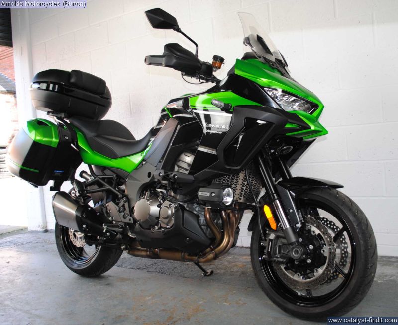 - Kawasaki Versys 1000 looking fantastic in the correct colour for any Kawasaki. Ready to tour with a full complement of touring must haves, Full luggage with inner bags hot grips crash protectors fog lights and a main stand to name a few.