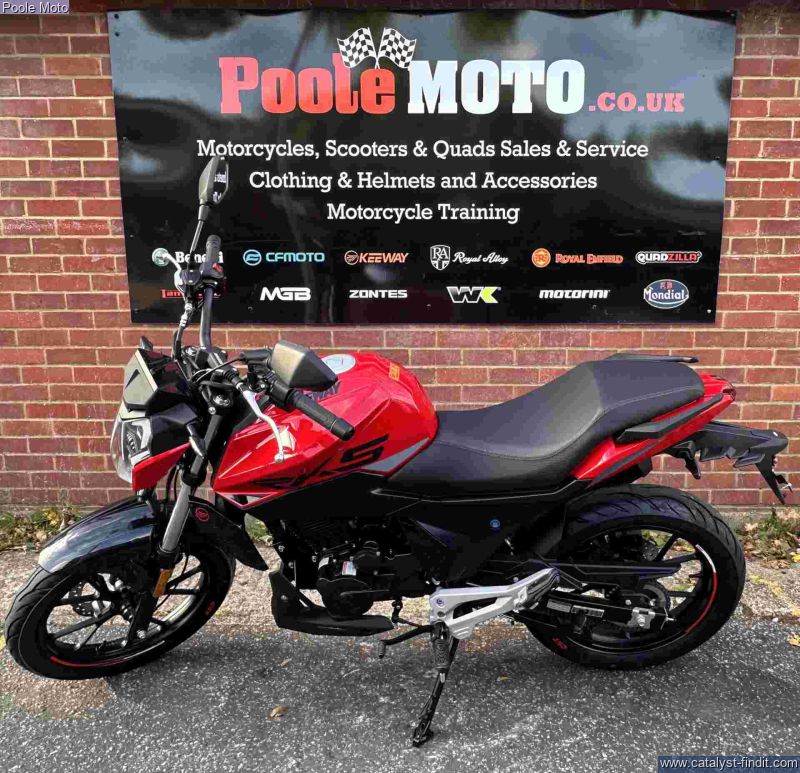- Precision Suspension and Braking The RKS 125 offers a safe and stable ride thanks to its telescopic front fork with 130 mm of travel and adjustable Pro-link rear shock absorber, which precisely absorbs shocks on uneven surfaces. The braking system includes a 278 mm front disc and a 220 mm rear disc, both with 2-piston calipers, ensuring fast and effective braking. In addition, the CBS (Combined Braking System) enhances safety by distributing braking force across both wheels.