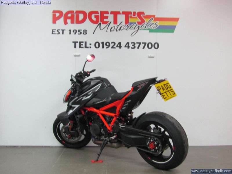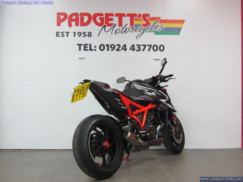 - We present here for sale this KTM 190 Duke RR in Orange. The bike has only covered 2,835 miles and is in great condition. The bike has been fitted with some superb extras including: - Full Titanium Akrapovic, Evotech Frame Protectors, Carbon Hugger, Carbon Front Mudguard, Gilles Rearsets, Carbon Fly Screen, Spindle Nut Cover Front & Rear, WP Apex Pro Shock & Forks, Tail Tidy, Cruise Control and Tank Pad and Tankl Pad Grips. The bike comes complete with Digital Owner’s Manual, 2 Keys, Digital Service Record Showing Full Service History (2 dealer stamps – last shown as 18/03/2025 @ 2,045 miles) and Log book. The bike is available for viewing and is well worth a look. Finance is available and is subject to status. Part Exchanges welcome. Nationwide delivery can be arranged from as little as £75. Usual Dealer Facilities including a Large range of clothing, helmets & accessories. Call Padgett's Motorcycles today to ensure that you don't miss out; Suzuki Sales Centre 01924 609808, Honda Sales Centre 01924 437700 and Yamaha Sales Centre 01924 478491.