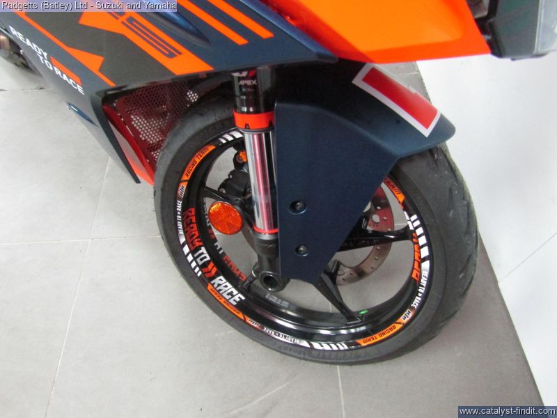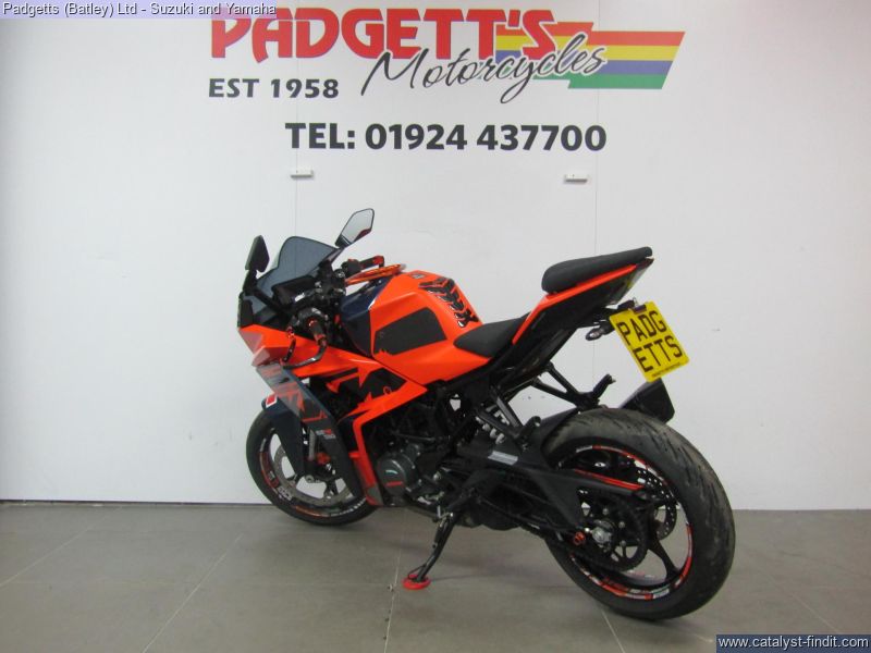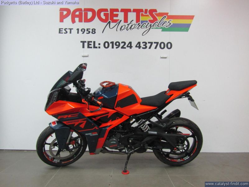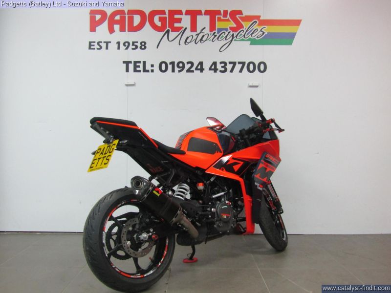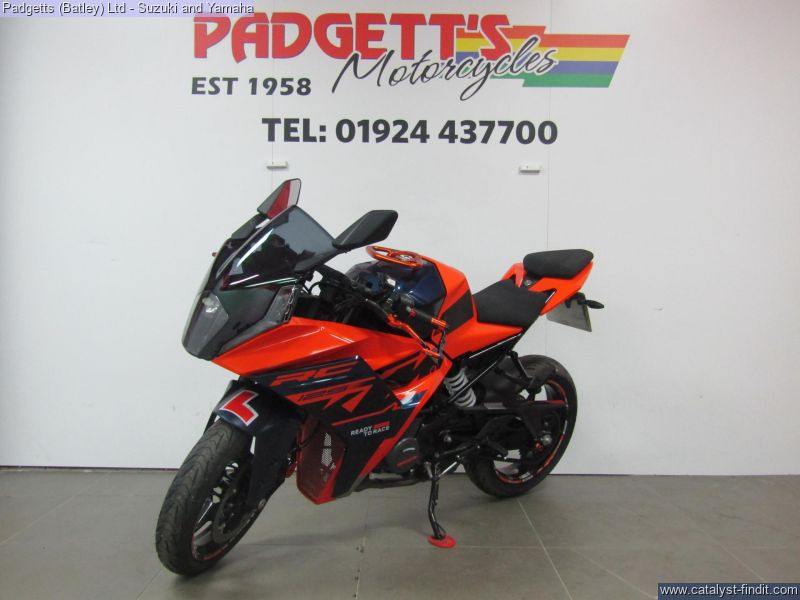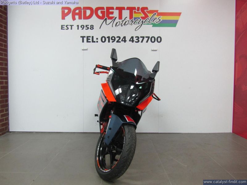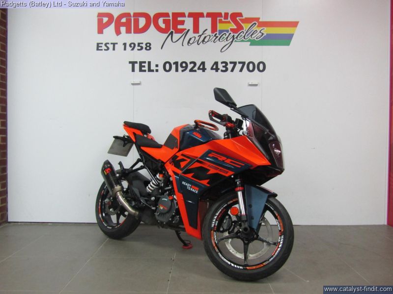 - We present here for sale this KTM RC125 in Orange. The bike has only covered 295 miles and is in great condition. The bike has been fitted with some superb extras including: - Akrapovic Exhaust, Pillion Tank Grab Rail, Tail Tidy, Radiator Guard, Rim Tape, Stand Bobbins, Lever Guard, Grips, Aftermarket Levers, Tank Pad and Tank Pad Sides. The bike comes complete with Digital Original Owner’s Manual, 2 Keys, Digital Service Record and Log book. The bike is available for viewing and is well worth a look. Finance is available and is subject to status. Part Exchanges welcome. Nationwide delivery can be arranged from as little as £75. Usual Dealer Facilities including a Large range of clothing, helmets & accessories. Call Padgett's Motorcycles today to ensure that you don't miss out; Suzuki Sales Centre 01924 609808, Honda Sales Centre 01924 437700 and Yamaha Sales Centre 01924 478491.