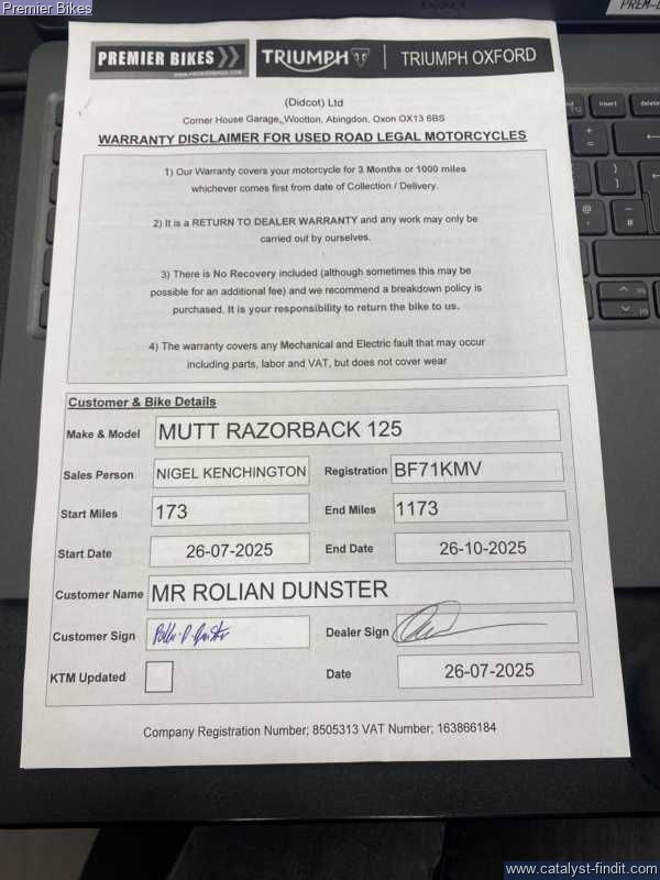 - We now have this Stunning One Owner LOW MILAGE 2021/71 Mutt Razorback 125 in Silver with only 173 Miles, As with all Mutt 125’s the Razorback is powered by our super-solid four-stroke black number and a Delphi fuel injection system, fed by our custom skinny tank. Oh, the tank? Yep, that’s another new item specific to the Razorback. Have you ever tried to mount an old 70’s tank to your one-off custom build? You have? Then you’ll be familiar with welding on new tabs, removing dents, blowing holes through the tank with your trusty TIG welder and all the other aggro that comes with fitting vintage parts to bikes. Trust Mutt - they’ve done a bunch of them. With that in mind for a production bike, for the Razorback we designed our own tank, taking influences from the many vintage tanks we have fitted to over the last 20 years. We took styling cues from several vintage bikes, but it is all Mutt, and has that one-off custom vibe you’ll never get from any other production bikes. Please ask for any additional pictures or we can also offer a personal video presentation of the bike for you. UK delivery can be arranged, Finance available (subject to your status), Call our experienced sales team now on 01235 519195 or email us at sales@premierbikes.com – Thanks for looking, Check out all of our other bikes at www.Premierbikes.com - Not all Bikes are on site, please contact us to arrange a viewing.