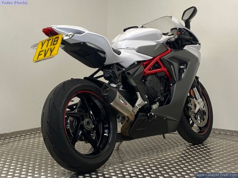 - Available now at Youles Honda Manchester, this stunning 2018 MV Agusta F3 800 finished in Pearlescent White is a true Italian superbike in immaculate condition. With its aggressive styling, sharp handling, and blistering performance, the F3 800 is every bit the riders dream and this example has been cherished and well looked after. Bike Details: 18 Plate Finished in Pearlescent White Immaculate condition Comes complete with both books and keys MOT history and service history present Supplied with a GPR Exhaust system fantastic sound and presence on the road Peace of Mind with Youles Honda: 4 Month / 4,000 Mile Warranty included Also comes with the Youles Lifetime Warranty for added reassurance Bike will be supplied with a 60-point health check A fresh 12 Months MOT before collection by its new owner Why Buy This Bike? The MV Agusta F3 800 offers superbike performance in a lightweight, agile chassis, making it equally at home on the road or track. This immaculate example, with its tasteful upgrades and excellent history, represents a rare opportunity to own an exotic sports bike in superb condition. Call Youles Honda Manchester today on 0161 527 5020 to reserve this stunning MV Agusta F3 800. Part exchanges are always welcome.