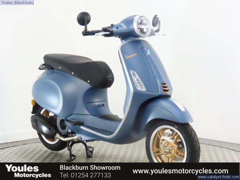 - The Vespa Primavera Officina 8 reinterprets Vespa’s heritage with elegance and a contemporary spirit. The intense blue livery is inspired by the industrial machinery found in the historic Officina 8 workshop of the Piaggio factory. A homage to tradition, transformed into a distinctive symbol of strength and identity. The metal details, polished brass rivets and contrast stitching on the saddle are testament to the ingenuity, care and passion Vespa has forever displayed.