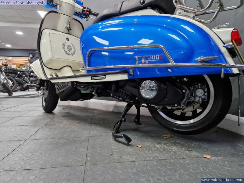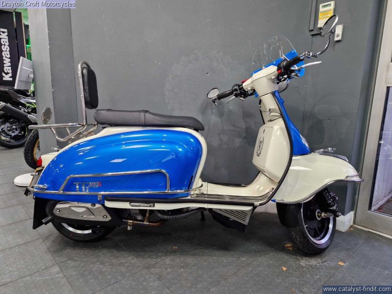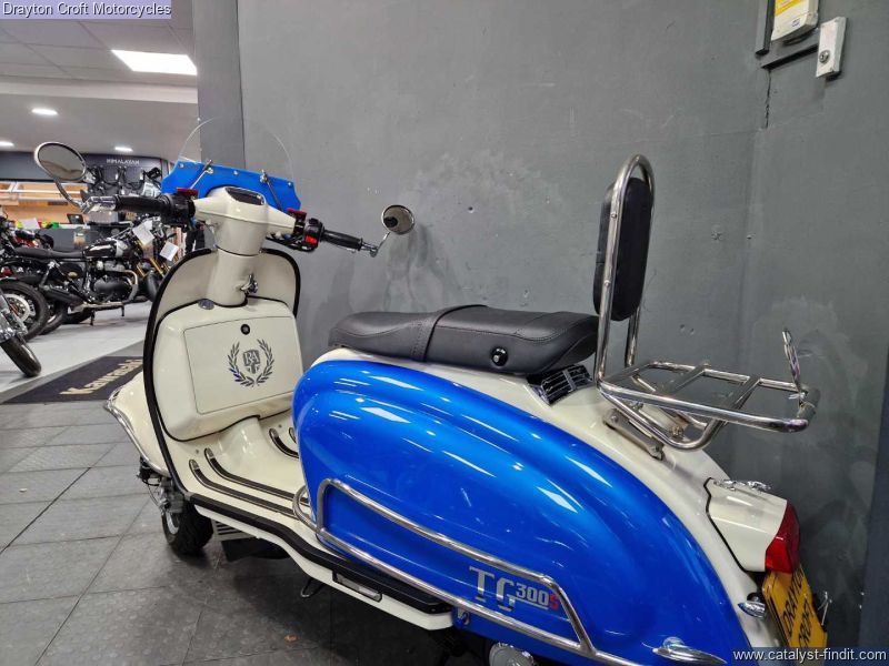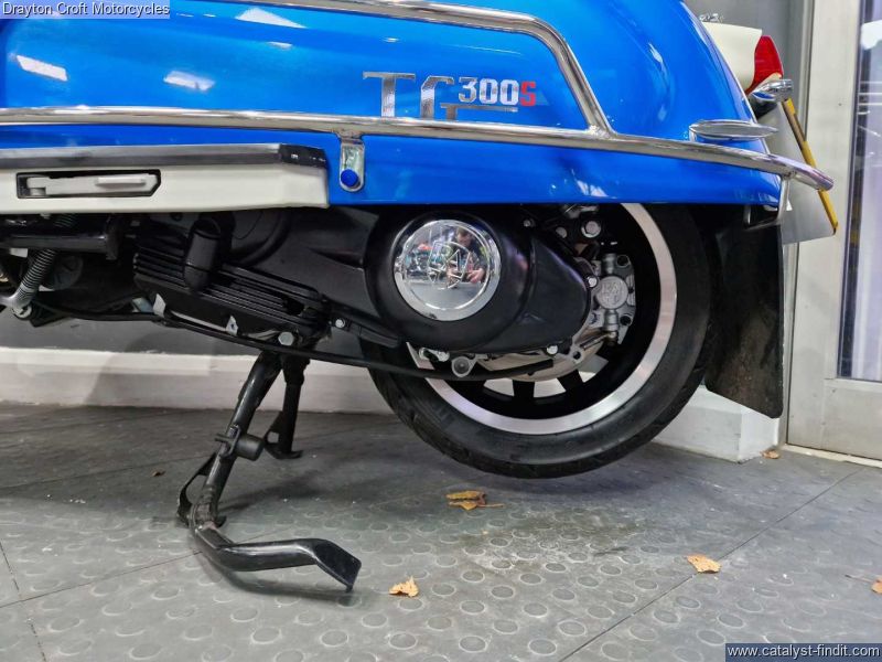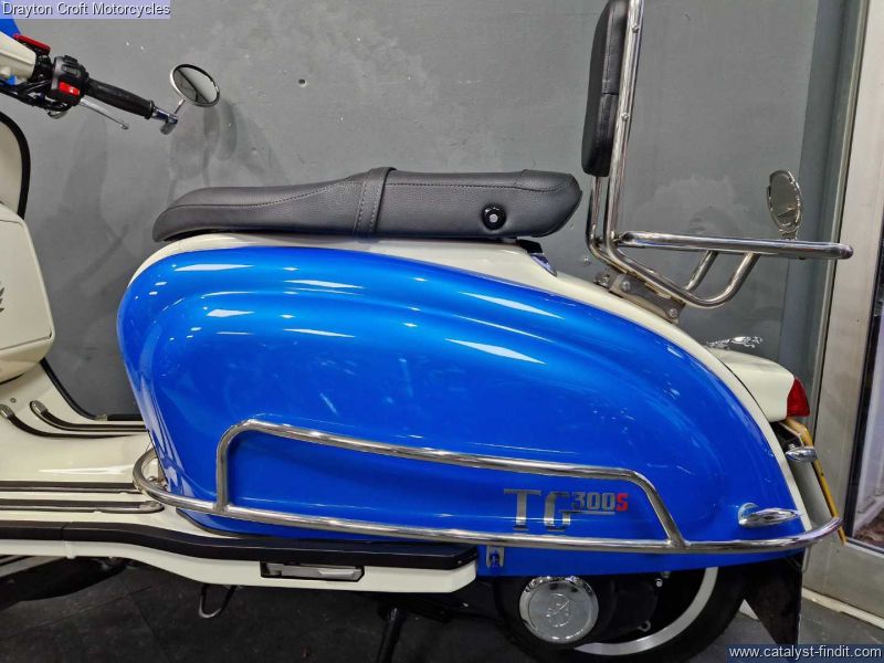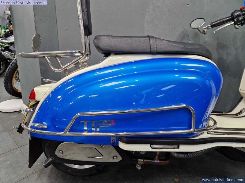 - Tg300 This is the early classic shape. She is in great colour combination of Cream and Blue Metallic, she has some very nice extra's fitted - Front Chrome Trim, Chrome Bar End Mirrors, Small Fly Screen, Large Rear Mud Flap, Chrome Raer Panel Frame, Back Rest and Rear Chrome Rack. All books and keys are present.