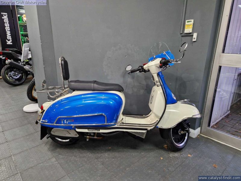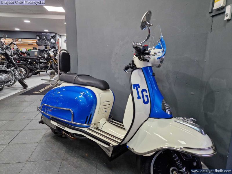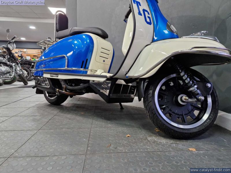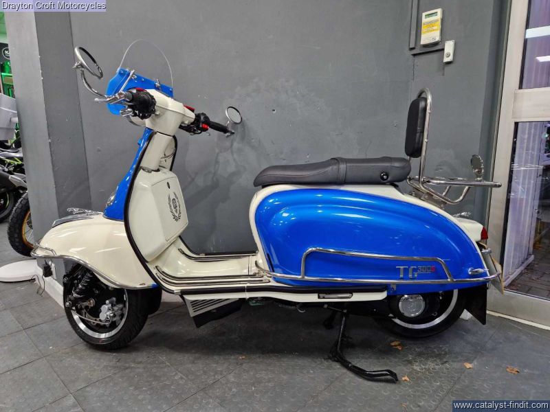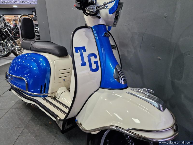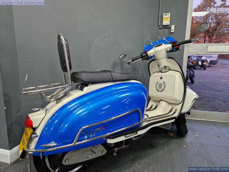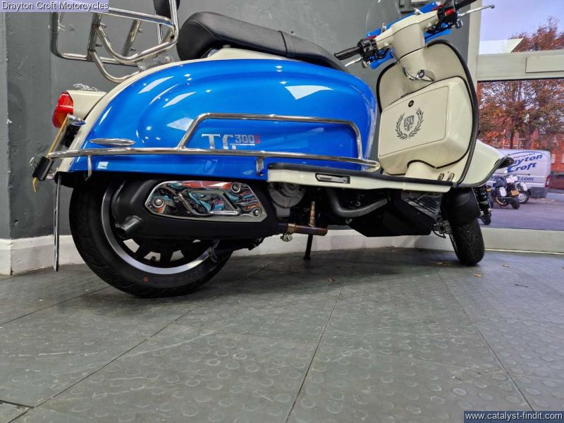 - Tg300 This is the early classic shape. She is in great colour combination of Cream and Blue Metallic, she has some very nice extra's fitted - Front Chrome Trim, Chrome Bar End Mirrors, Small Fly Screen, Large Rear Mud Flap, Chrome Raer Panel Frame, Back Rest and Rear Chrome Rack. All books and keys are present.