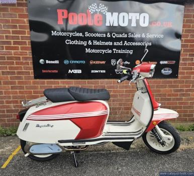 - 2025 ROYAL ALLOY GP350MT The 2025 GP350MT takes the proven platform of our most powerful scooter and gives it an injection of attitude. With bold styling, standout finishes, and serious road presence, it’s a fresh take on the Royal Alloy formula — built for riders who want to make a statement. Powered by a 309cc liquid-cooled engine, the GP350MT delivers smooth, responsive power with effortless performance across town or out on the open road. This is scootering with muscle — all wrapped in the unmistakable silhouette of the GP series. Key features include: 309cc liquid-cooled engine with strong mid-range torque Full-colour TFT dash with crisp, modern visuals Distinctive MT side panel design Colour-matched frame, forks, and detailing Lightweight ABS bodywork Brushed brake calipers and chrome mirrors Classic leg shield storage and standard rear rack