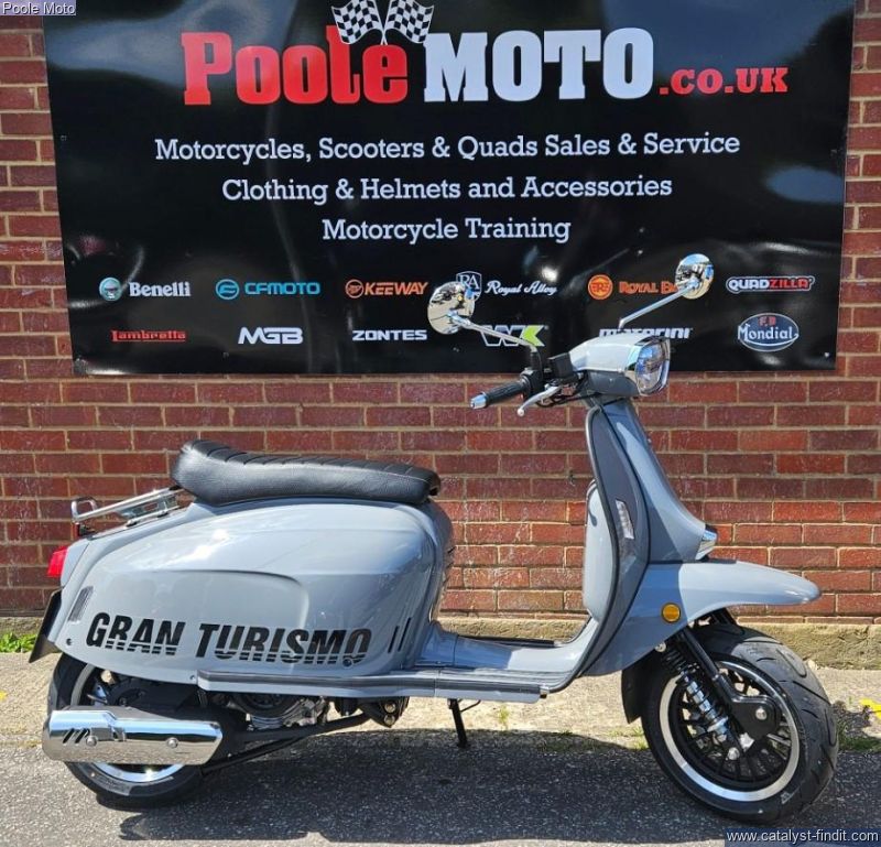 - 2025 ROYAL ALLOY GT1 125 Introducing the 2025 Royal Alloy GT1 125 — a timeless icon reimagined for today's rider. Compact, agile, and effortlessly stylish, the GT1 is Royal Alloy’s entry-point into classic scootering—but don’t mistake it for basic. This lightweight legend blends retro charm with modern capability, delivering a smooth, confidence-inspiring ride that’s as easy to handle as it is to fall in love with. At its core is Royal Alloy’s latest liquid-cooled 125cc engine—our most efficient and powerful yet—ensuring punchy performance whether you're cruising city streets or exploring country lanes. Dual-channel ABS and advanced traction control come as standard, offering serious safety and stability, while the shared ‘anti-dive’ front suspension from our premium classics delivers responsive, predictable handling.The GT1 125 also features: Lightweight, durable ABS bodywork for everyday resilience Classic single-skin leg shield with integrated storage box Standard rear rack, perfect for weekend escapes Clean, clear analog speedometer shared with the GP Series Faithful to the golden era of scootering with clean, minimalist lines, the GT1 125 isn’t just built to ride—it’s built to be yours. Choose from a vibrant palette of colours and explore a wide range of accessories to make your scooter as unique as you are.